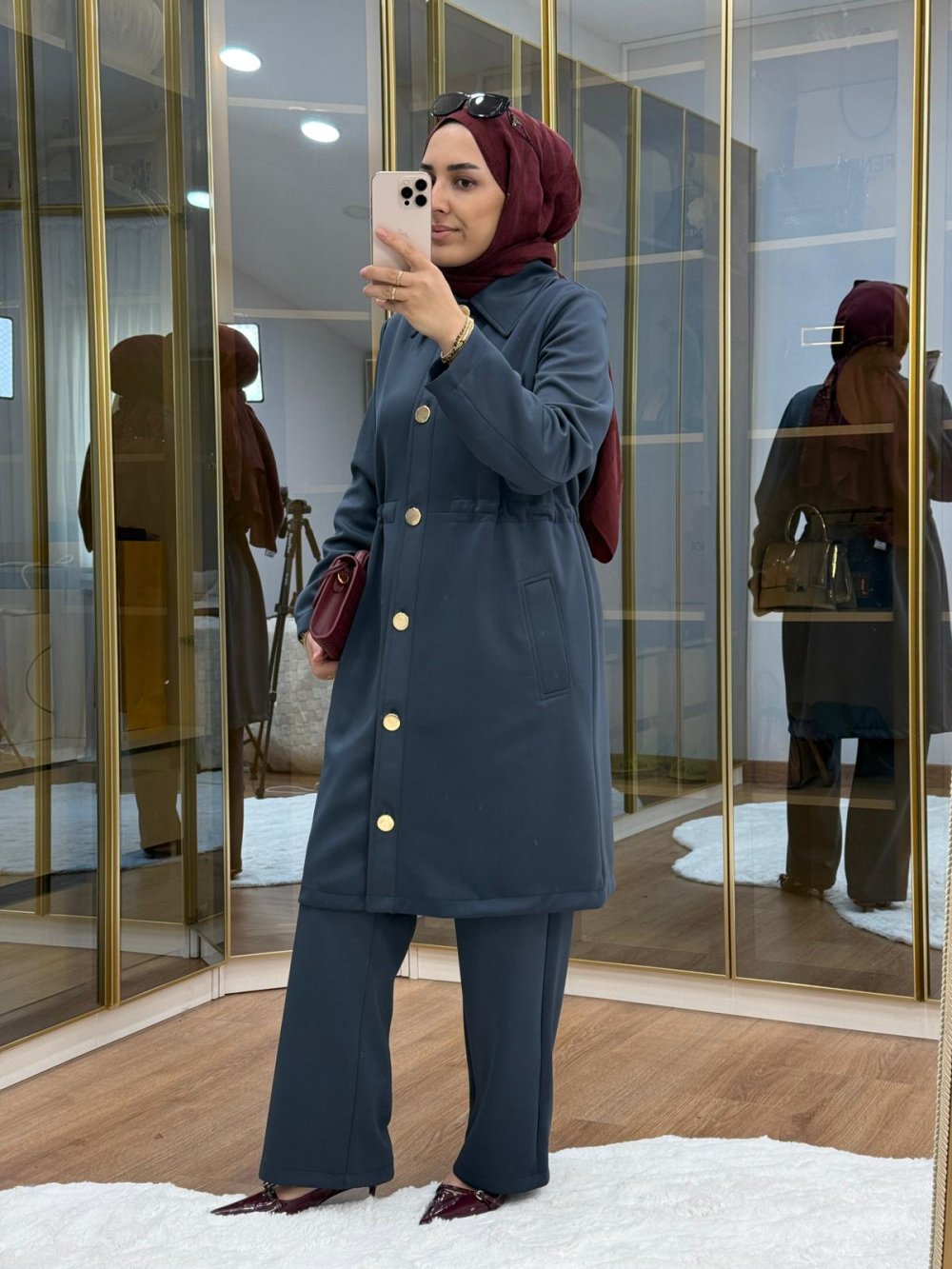 •  gold düğmeli beli büzgülü scuba takım •