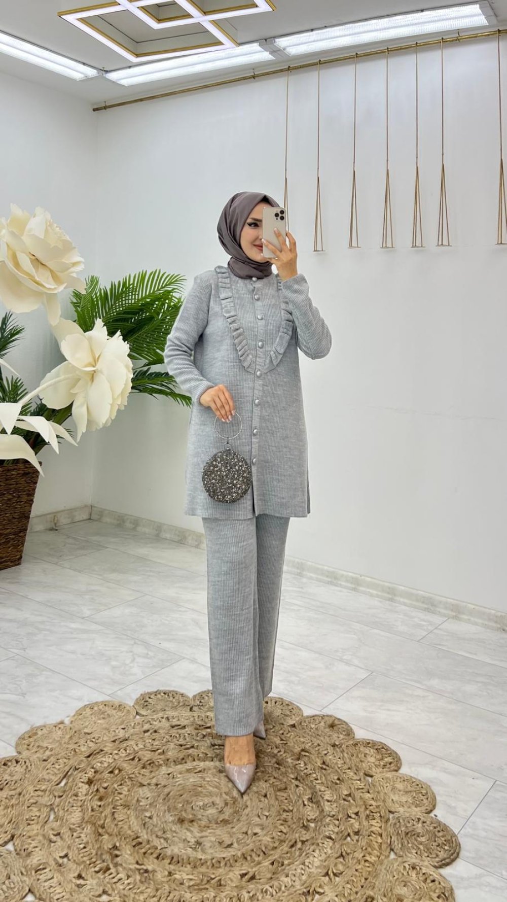 Gri Pera Triko Takım Tesettür Giyim
