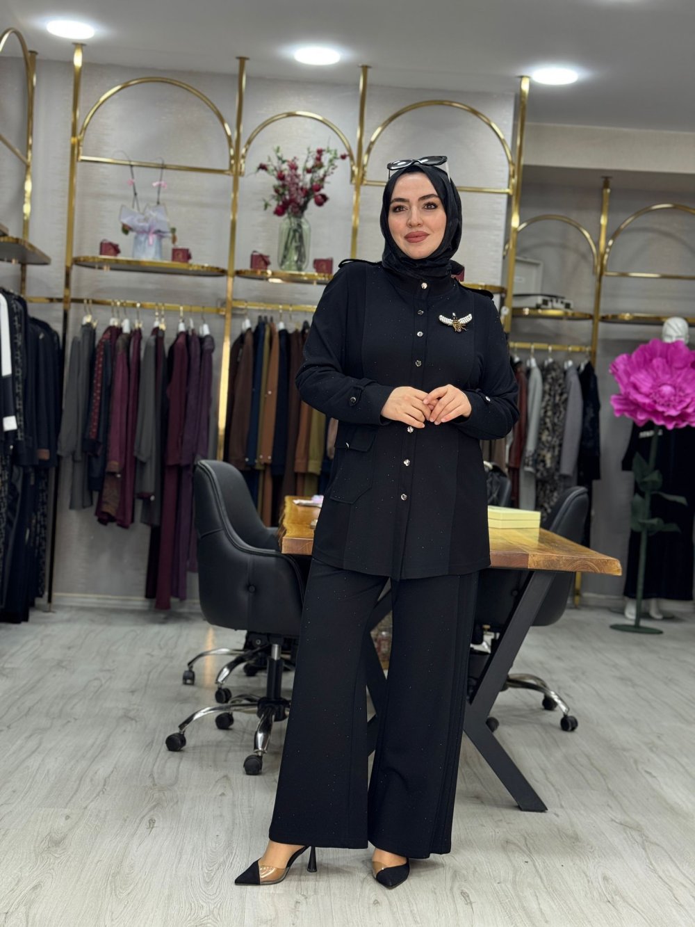 Kumaşı çeliktir. Önü fermuarlıdır. Pantolon beli lastiklidir.