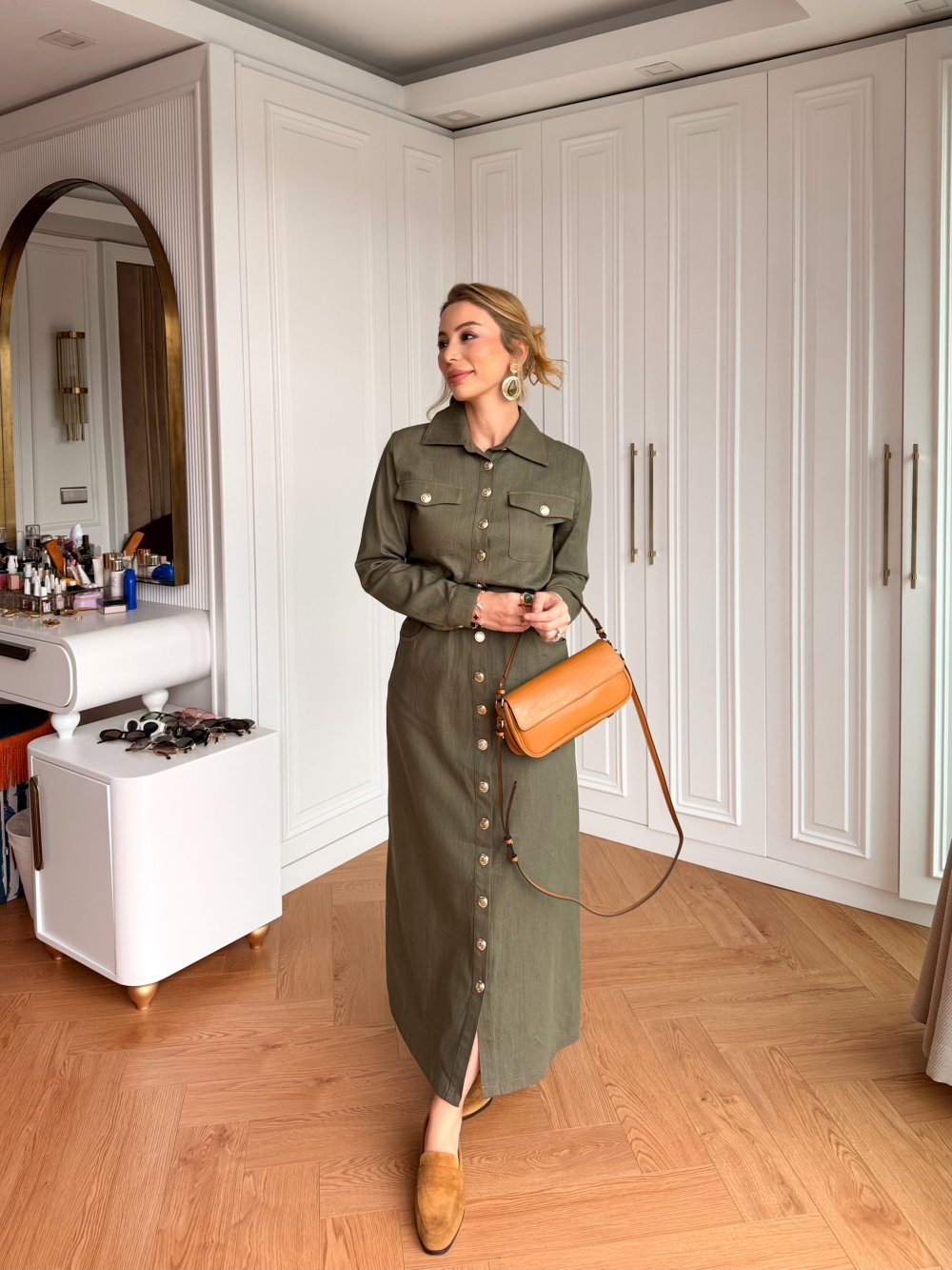 Elbise Tam Boy Düğme Detaylıdır.