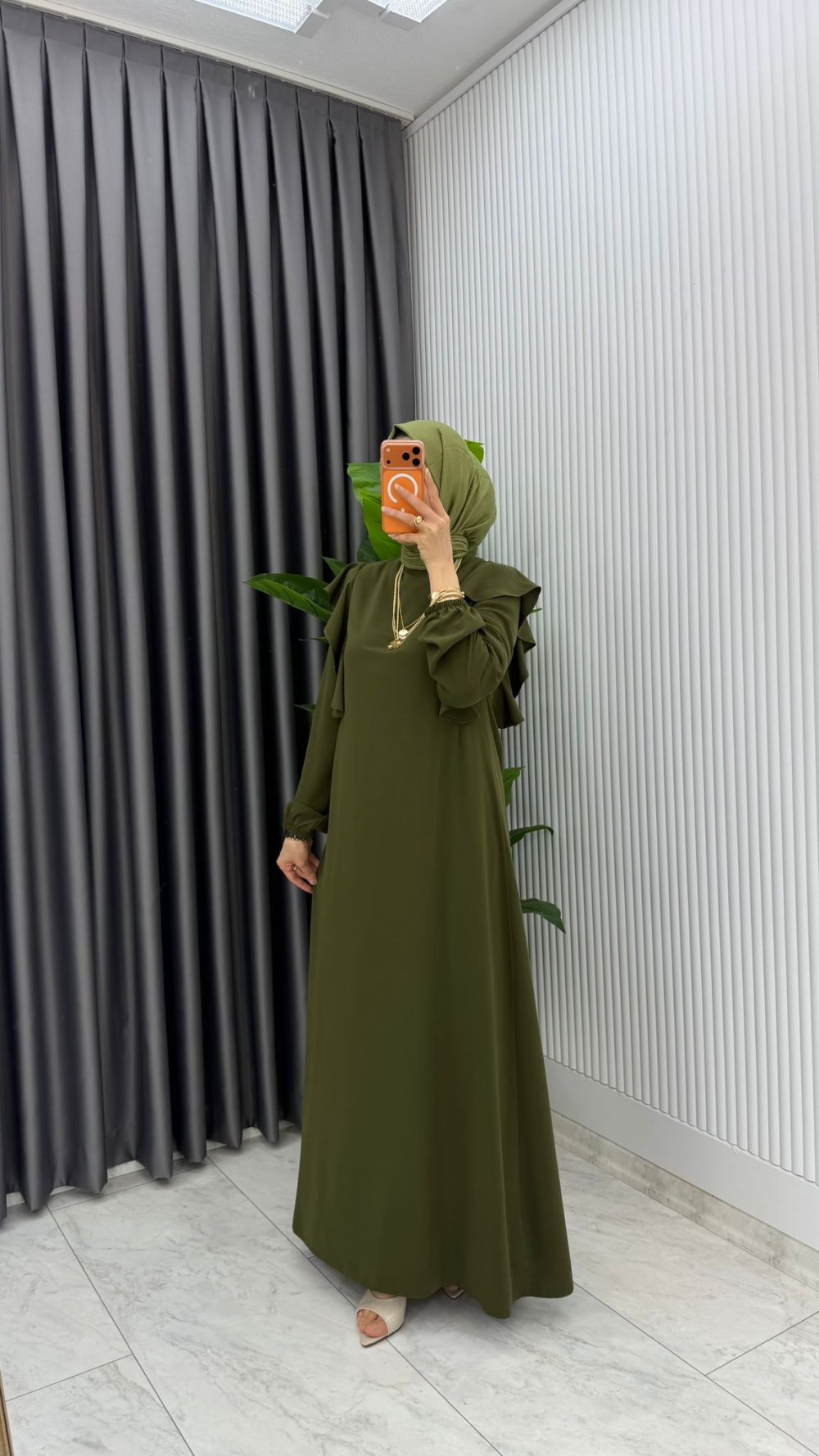 Haki Eylül Elbise Premıum Tesettür Giyim