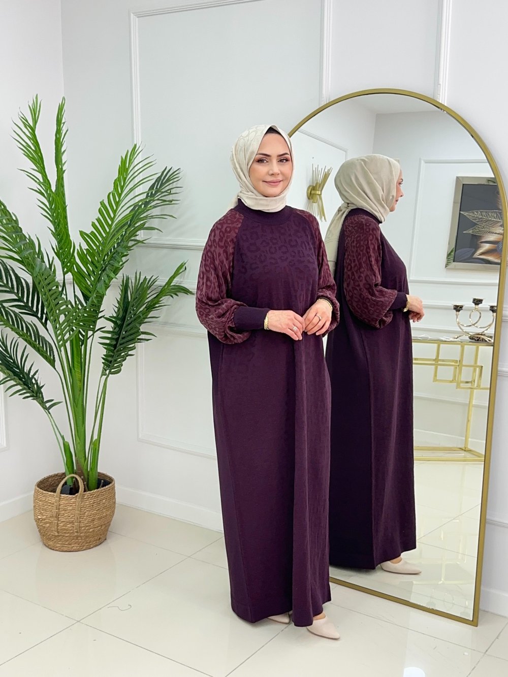 HAVVA MERSERİZE ELBİSE - MÜRDÜM Mürdüm