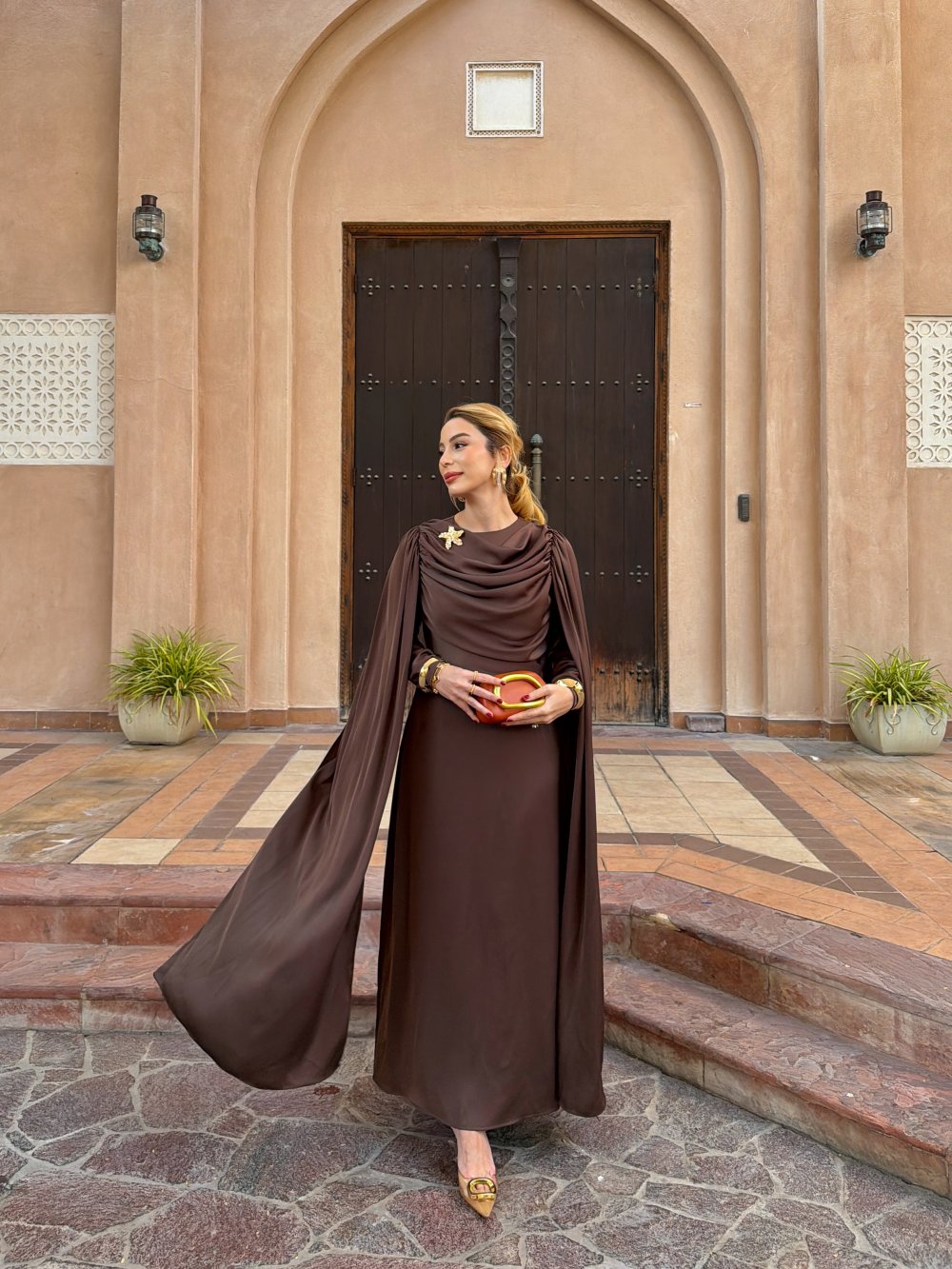 Elbise Omuz Pelerin Detaylıdır.