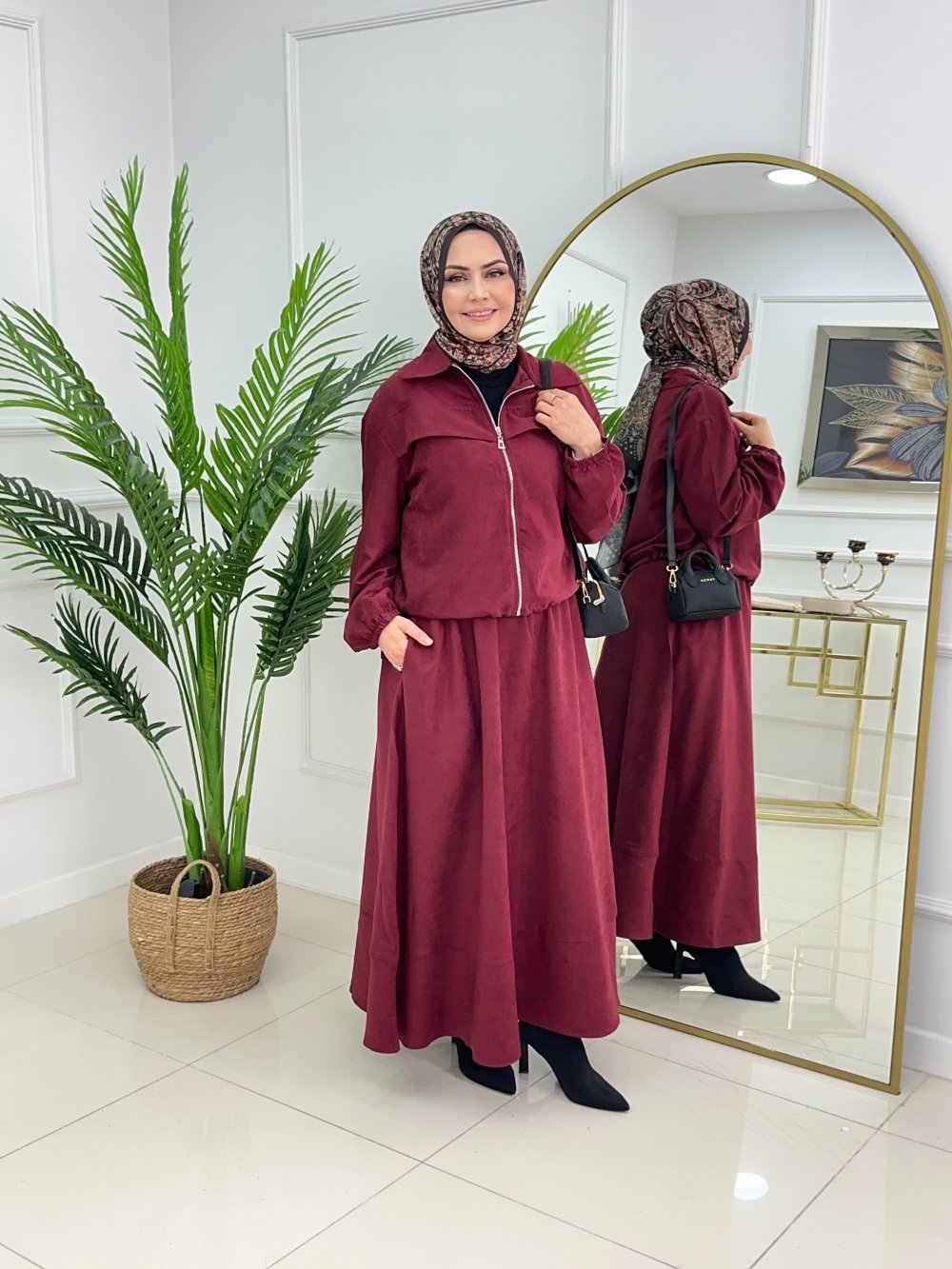 HİFA ETEKLİ TAKIM - BORDO Bordo