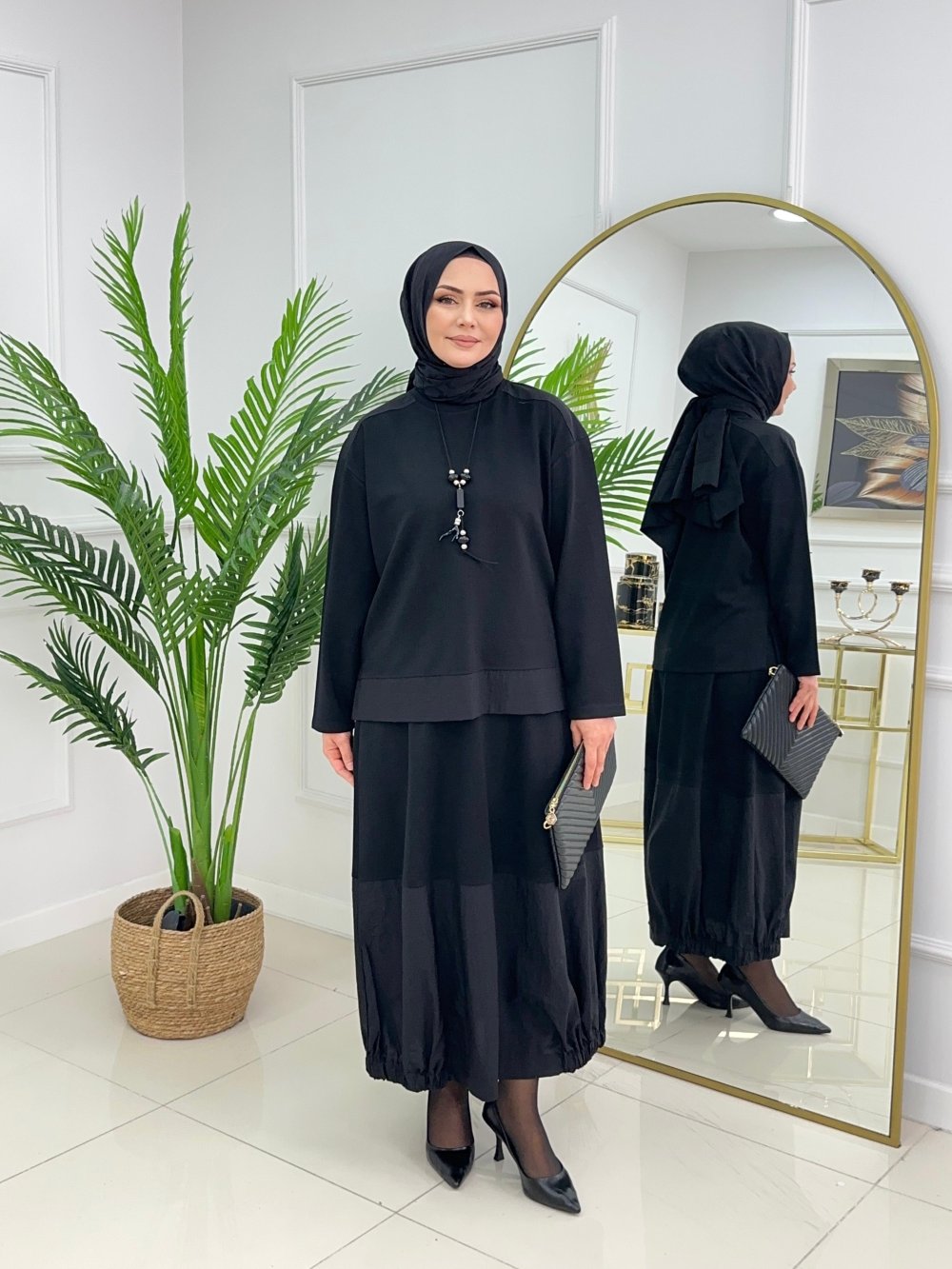 HÜLYA ETEKLİ TAKIM - SİYAH Siyah