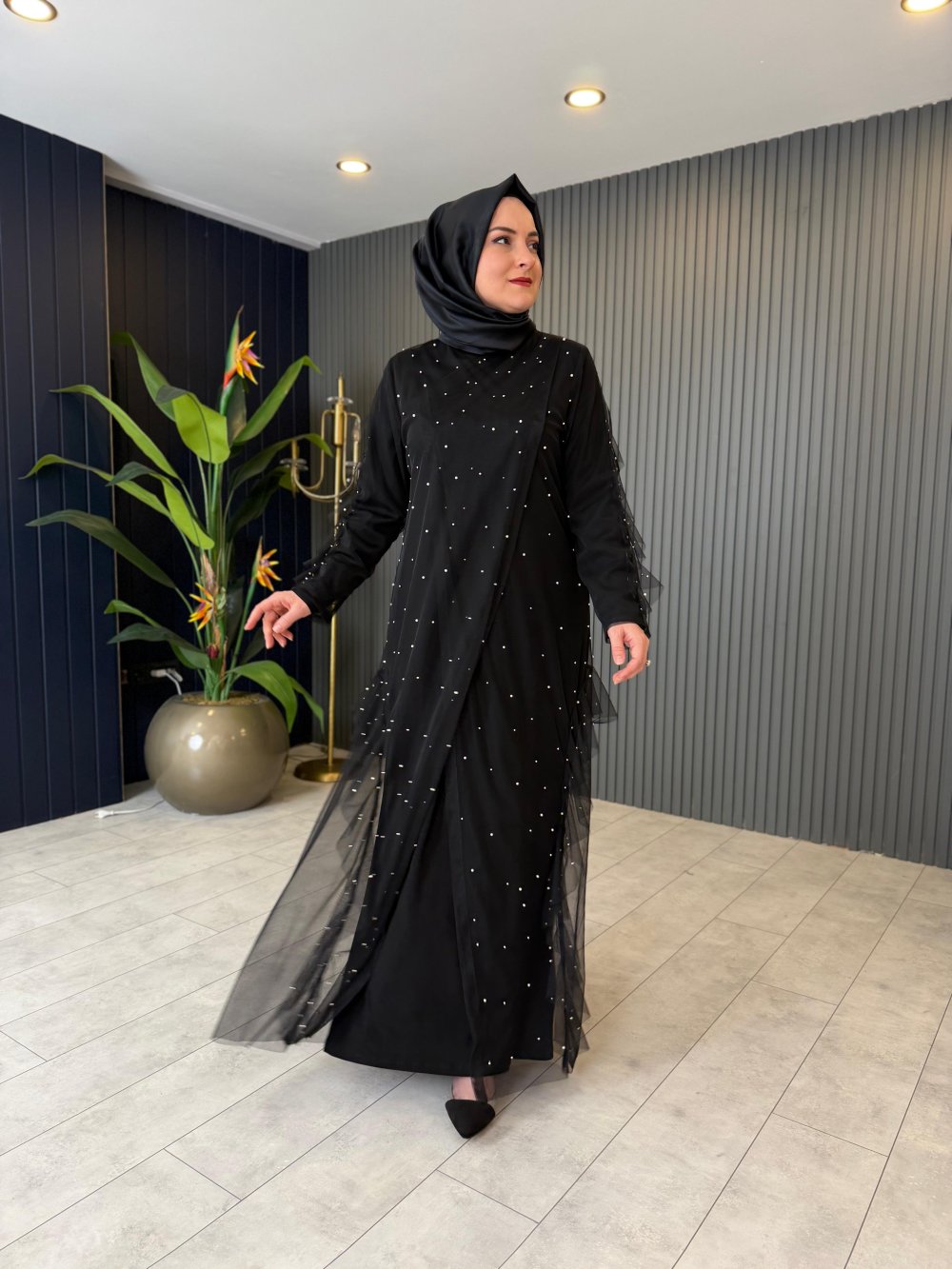İnci Detaylı Tül Elbise