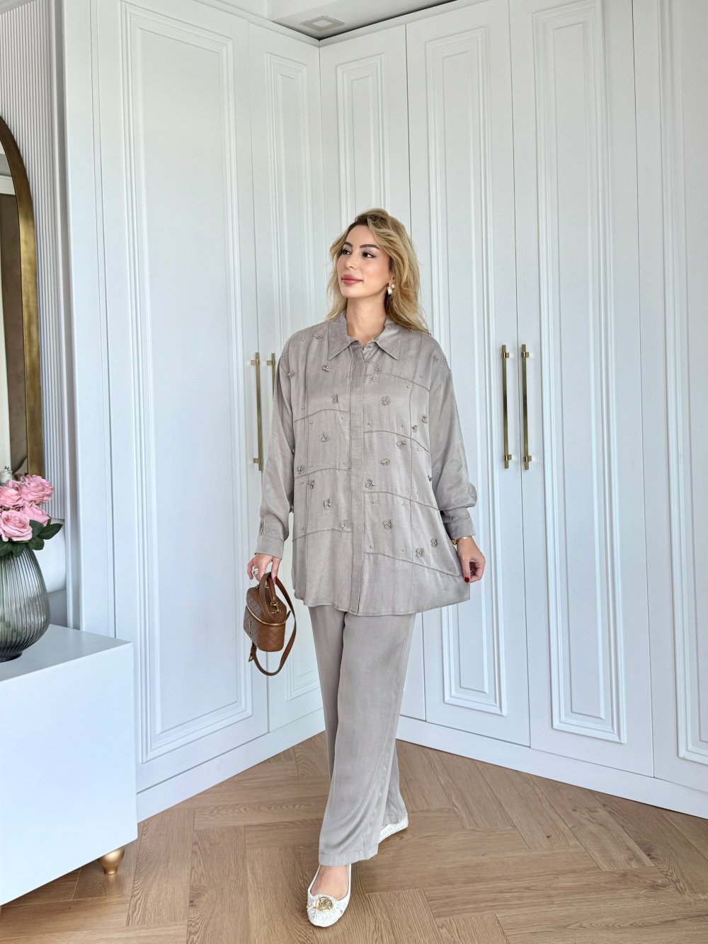 Gömlek Üzeri Gümüş Boncuk Ve Çiçek Detaylıdır