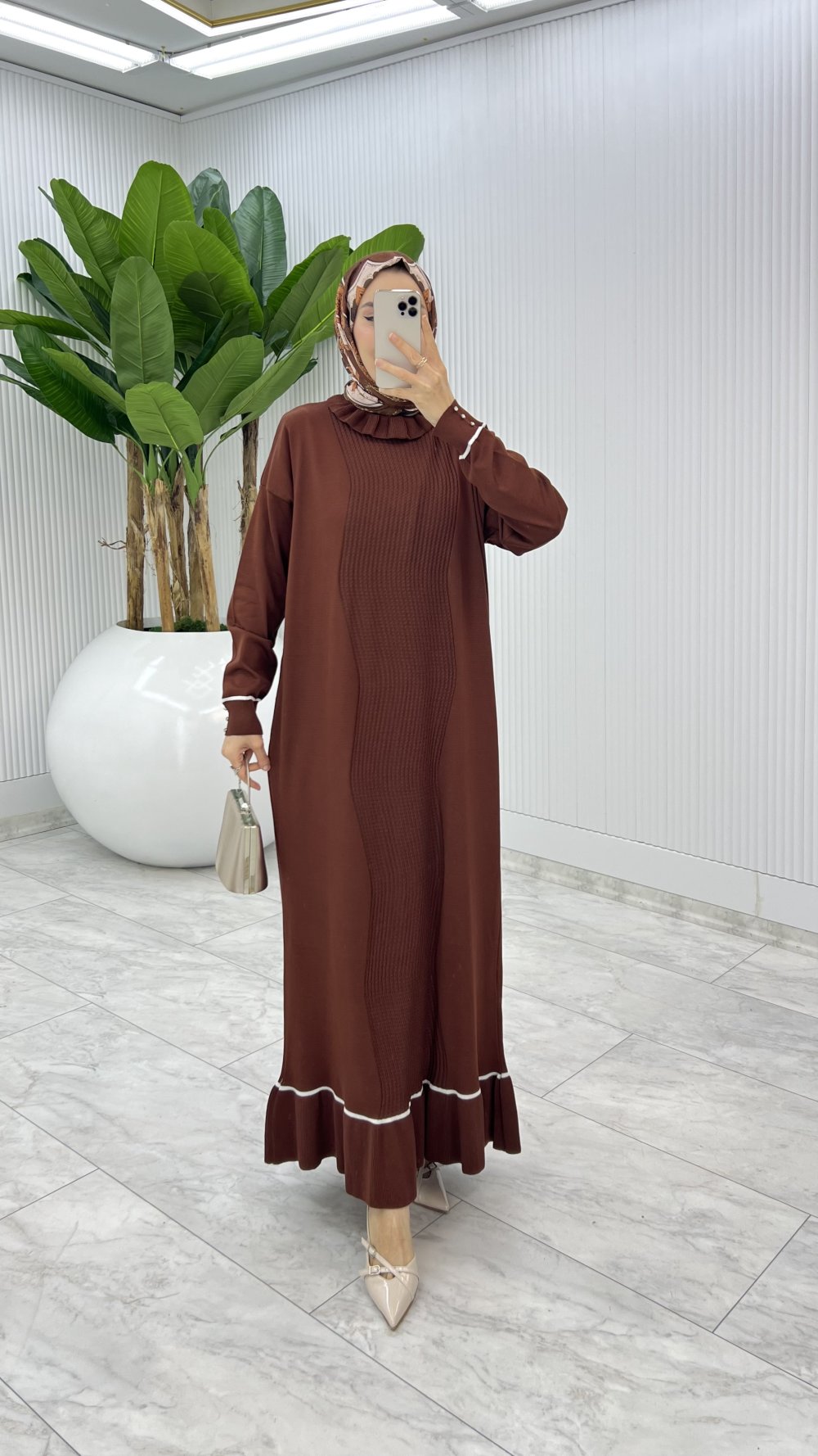 Kahve Bensu Triko Elbise Tesettür Giyim