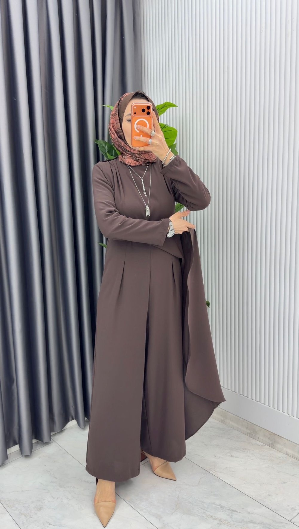 Kahve Kemerli Nalan Tulum Elbise Tesettür Giyim