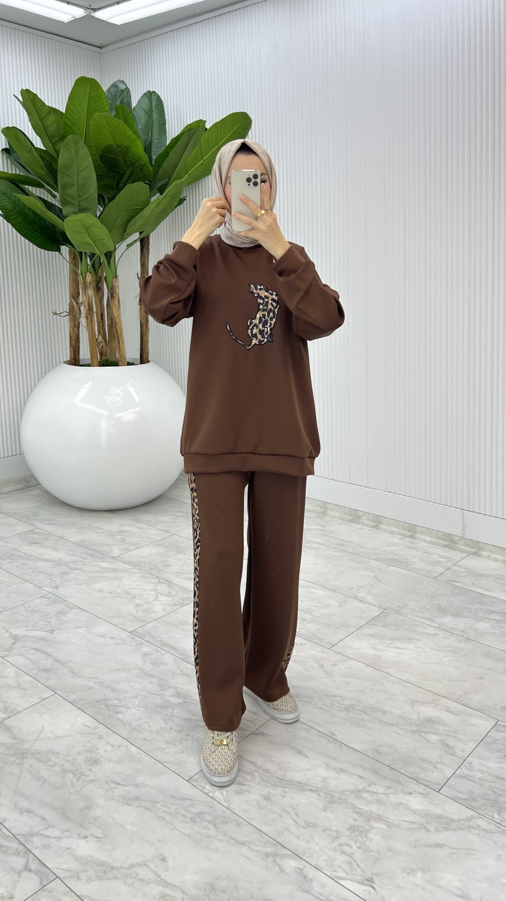 Kahve Leoparlı Scuba Takım Tesettür Giyim