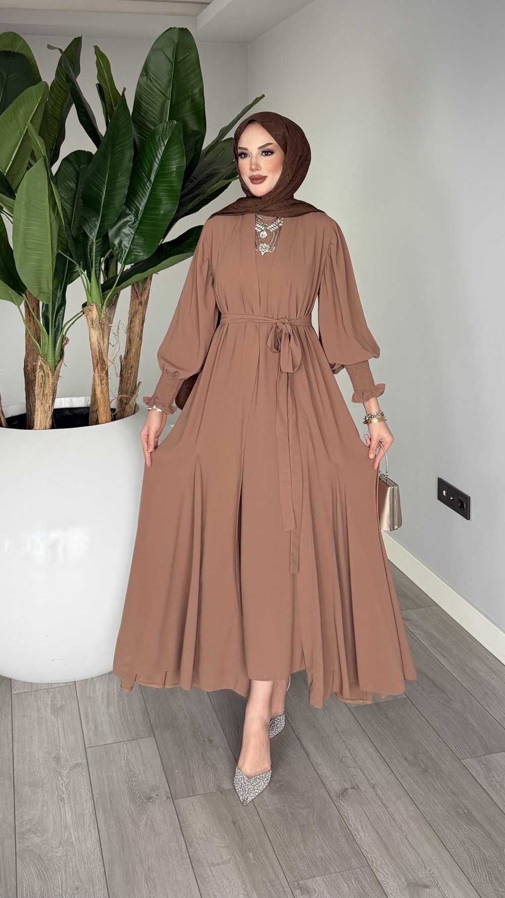 Kahve Meşk Abaya Takım Tesettür Giyim