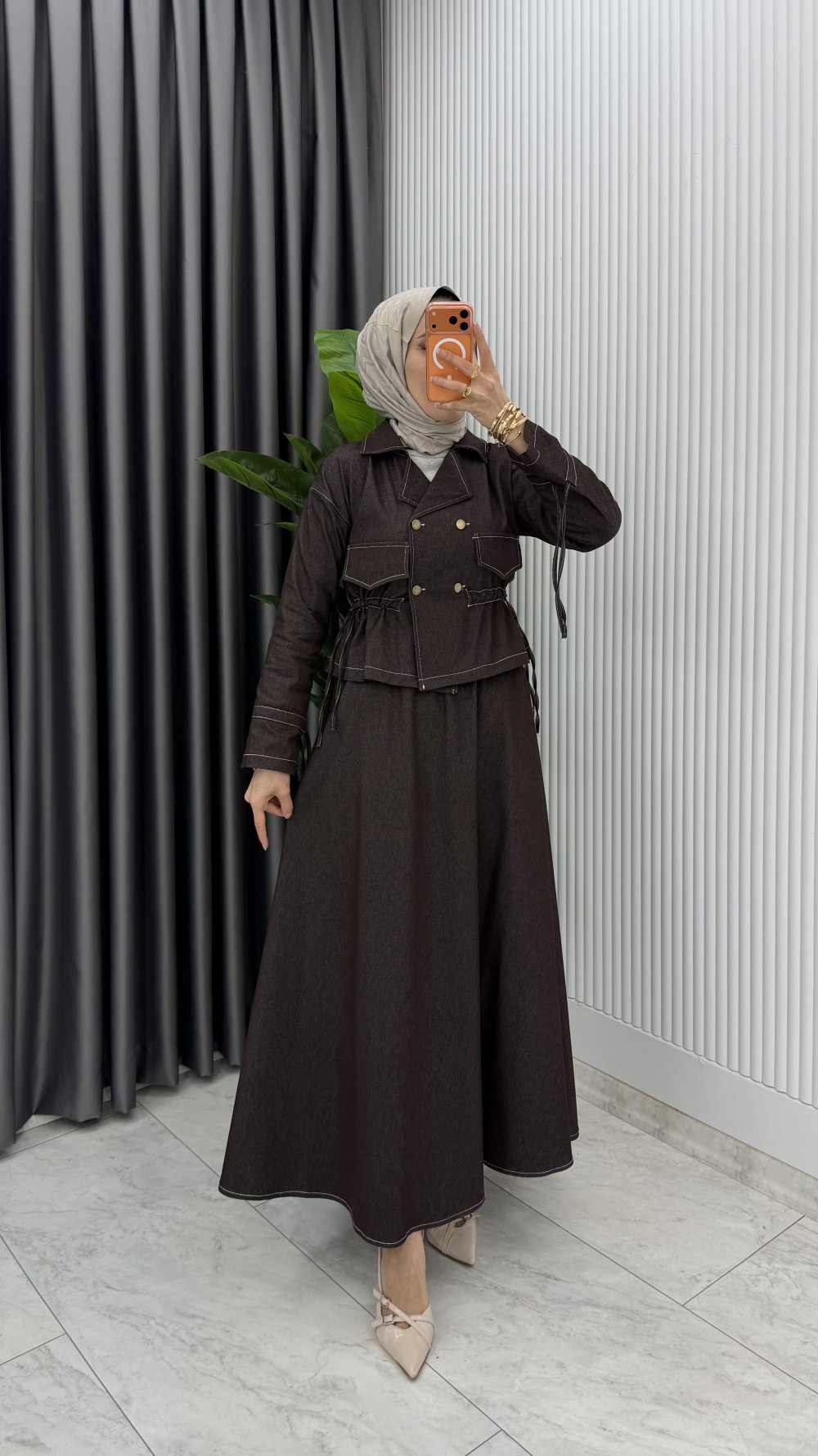 Kahve Premium Reyhan Kot Takım Tesettür Giyim