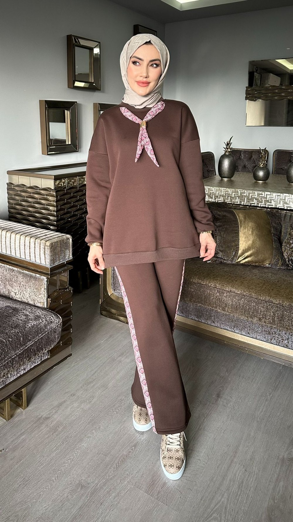 Kahve Premıum Scuba Fularlı Takım Tesettür Giyim