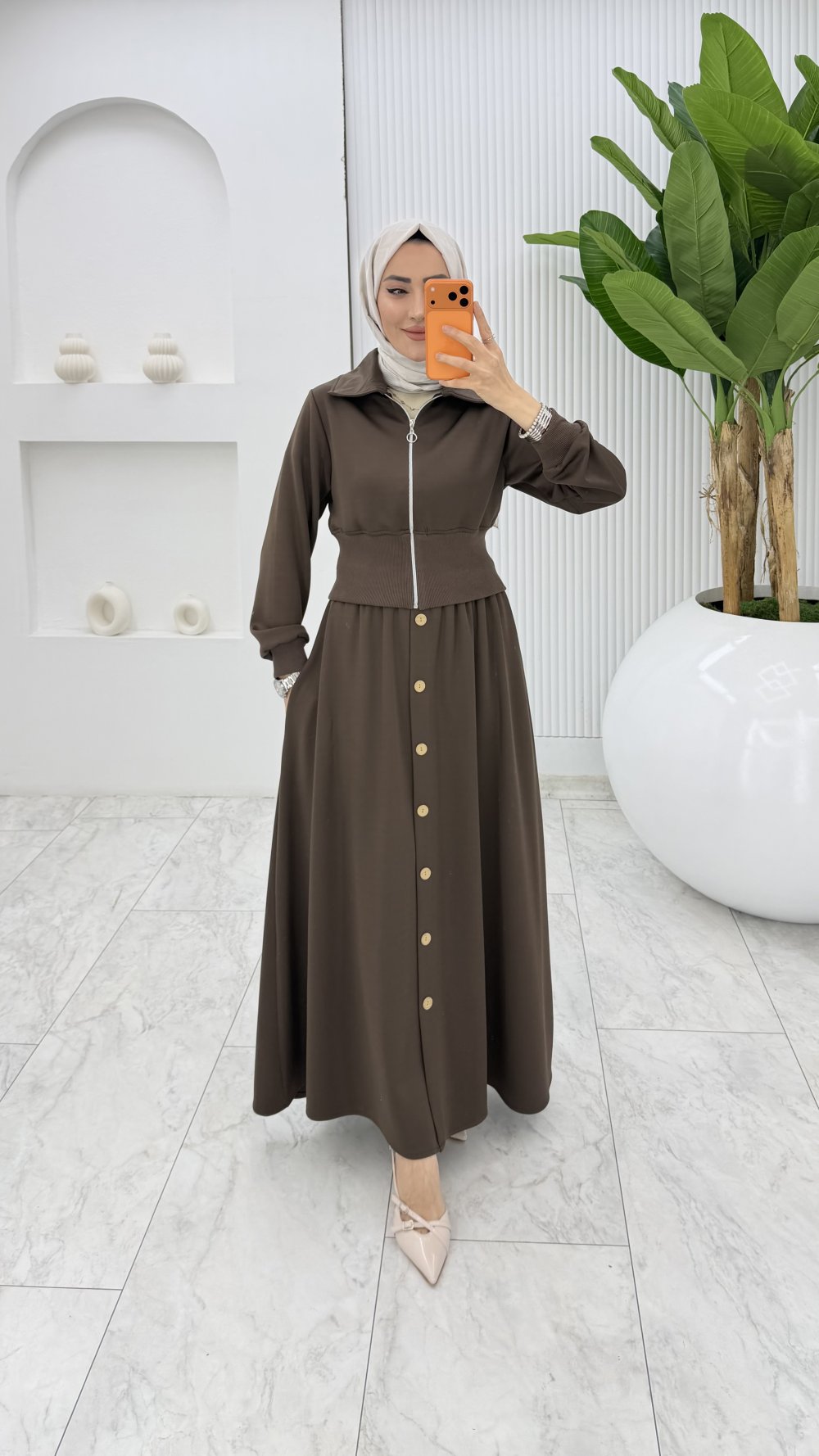 Kahve Şazeli Premium Etek Takım Tesettür Giyim