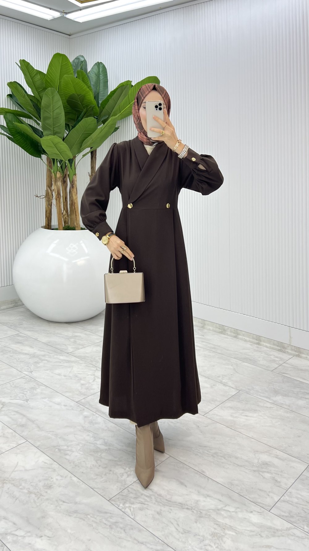 Kahve Semra Ferace Elbise Tesettür Giyim