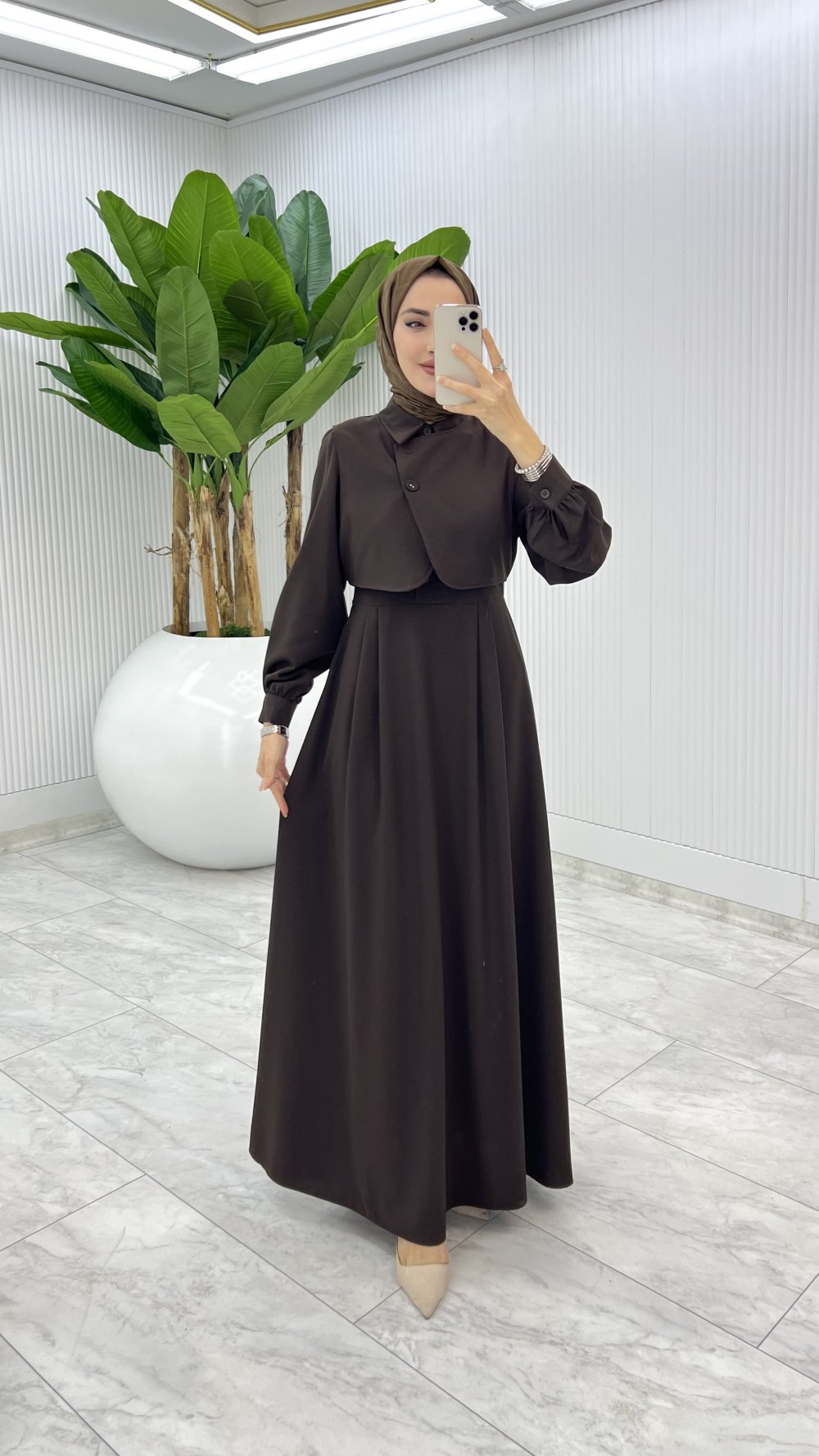 Kahve Sevgi Yelekli Elbise Takım Tesettür Giyim