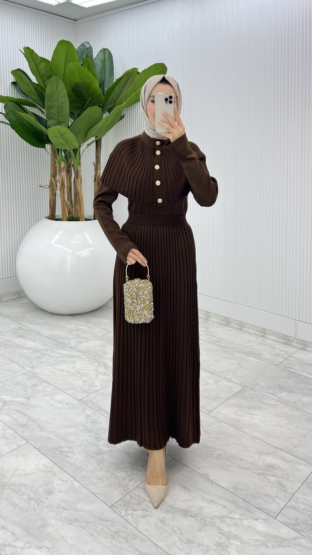 Kahve Sümeyye İkili Triko Takım Tesettür Giyim