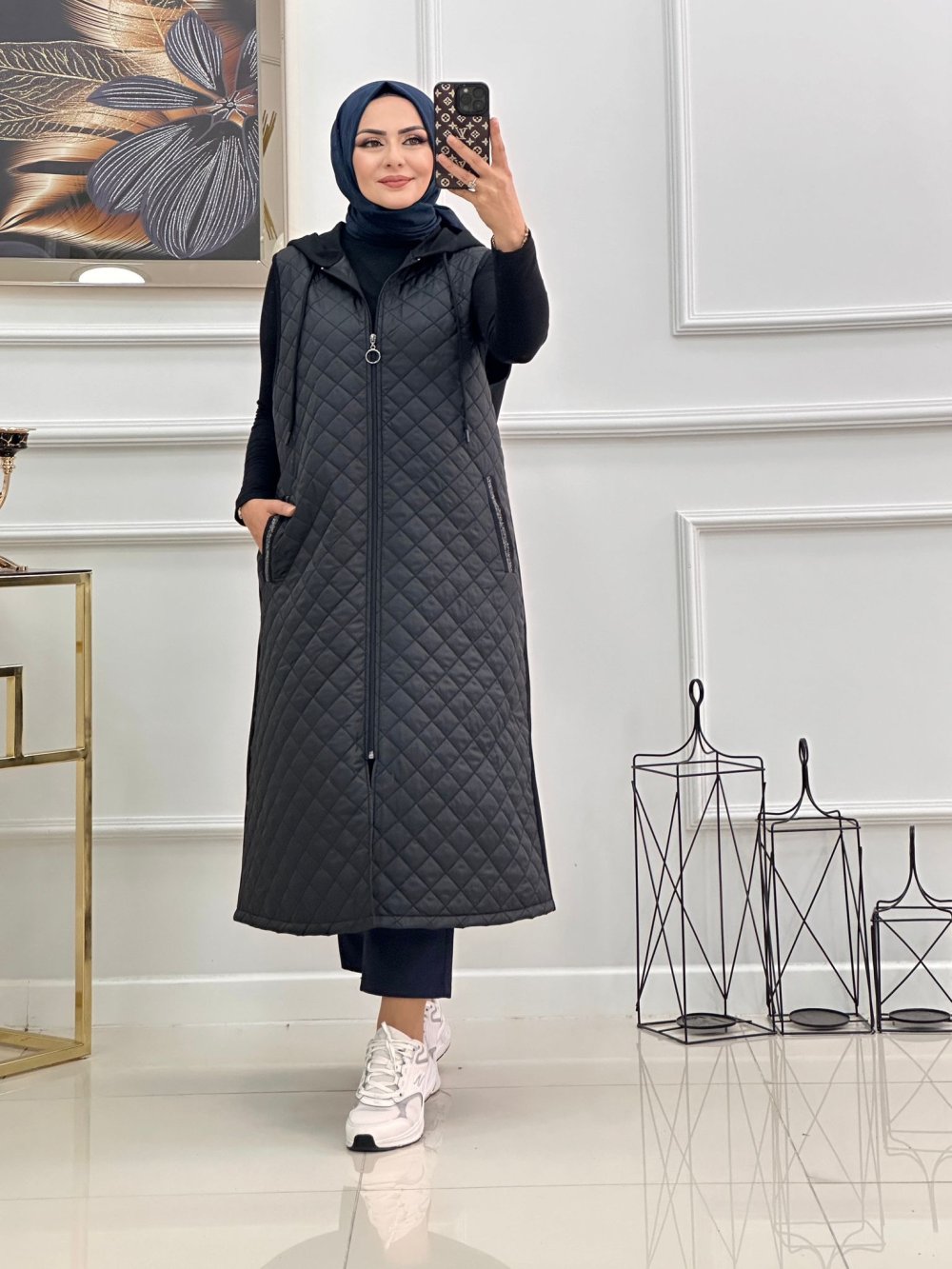 Kapitone yelek -Siyah Siyah