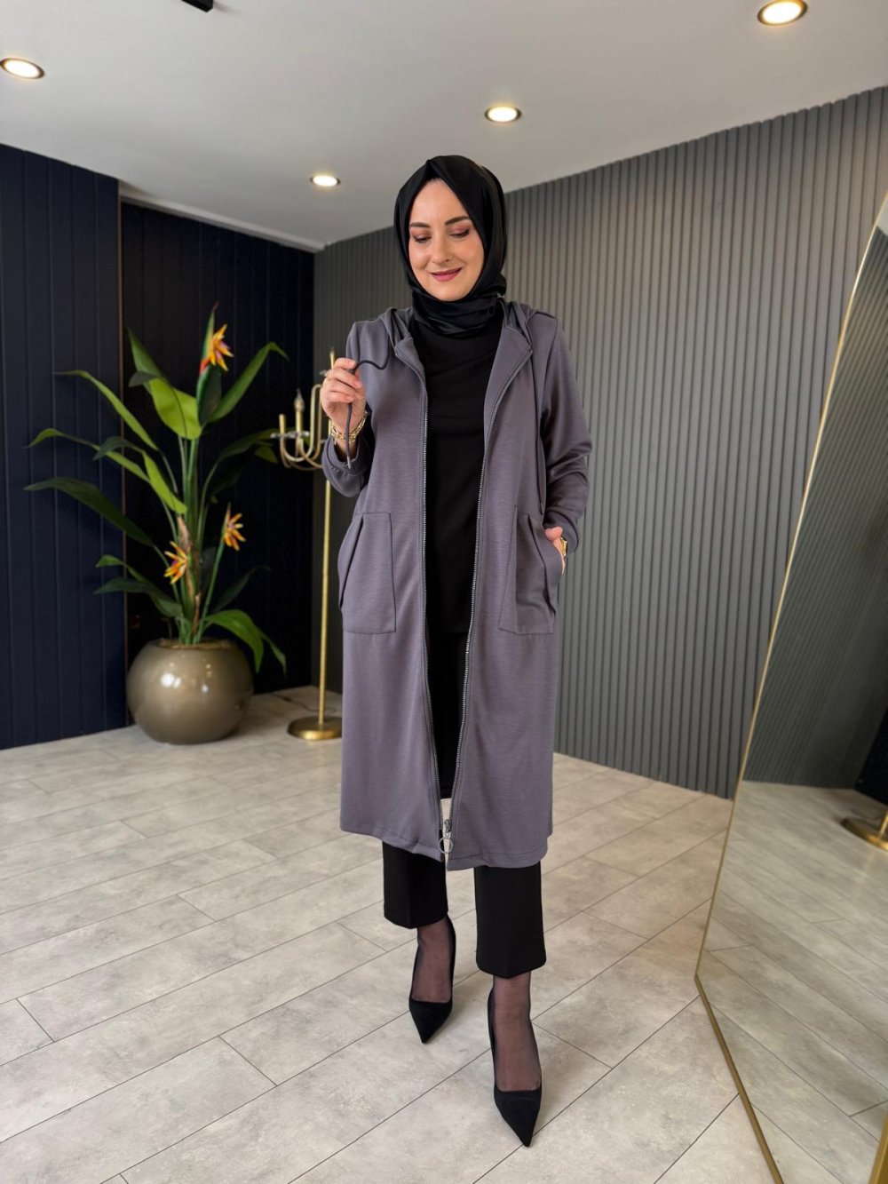 Kapüşonlu Fermuarlı Kap