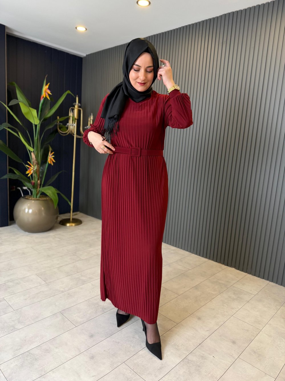 Kemerli Piliseli Rahat Elbise