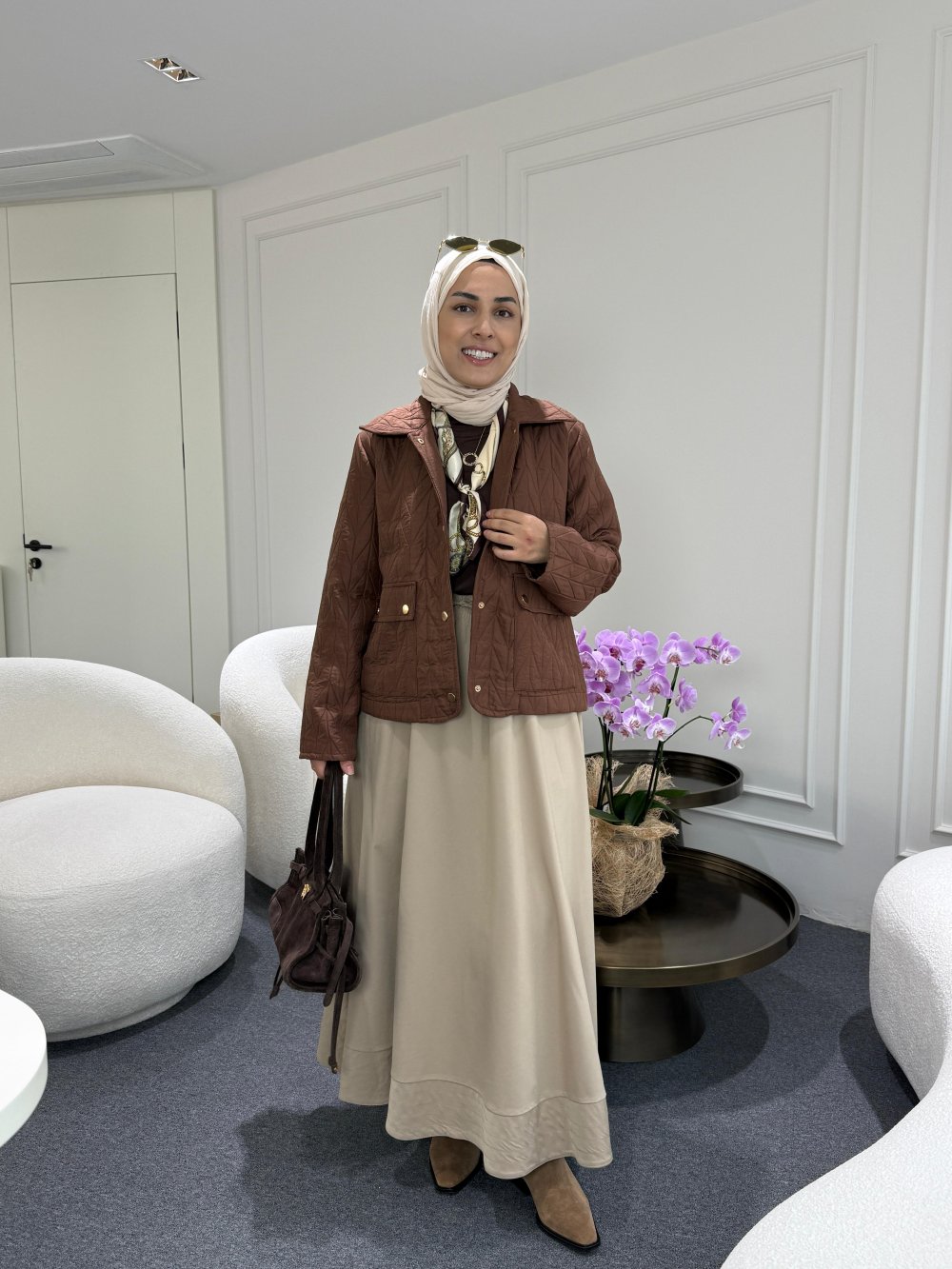 Kısa Kapitone Ceket Kahverengi