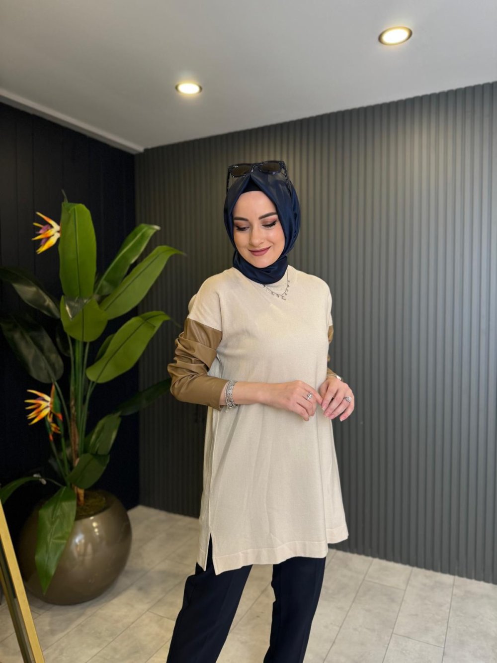 Kolları Deri Detaylı Tunik