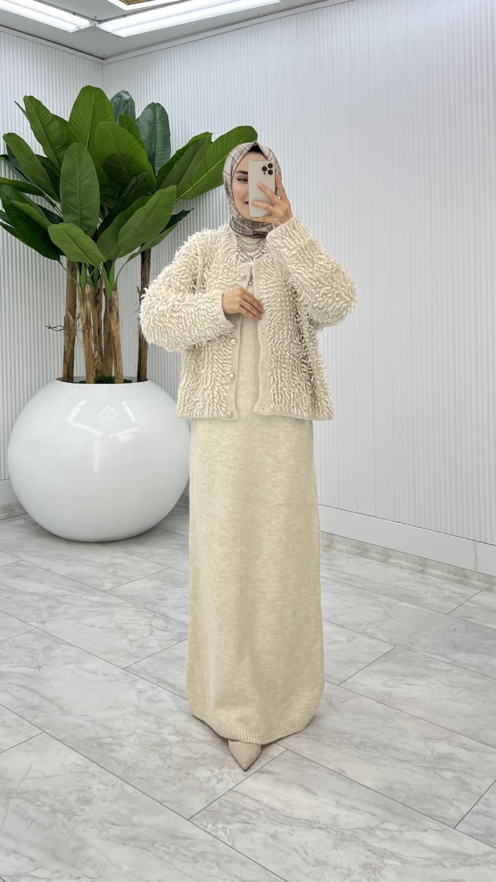 Krem Başak Triko Takım Tesettür Giyim