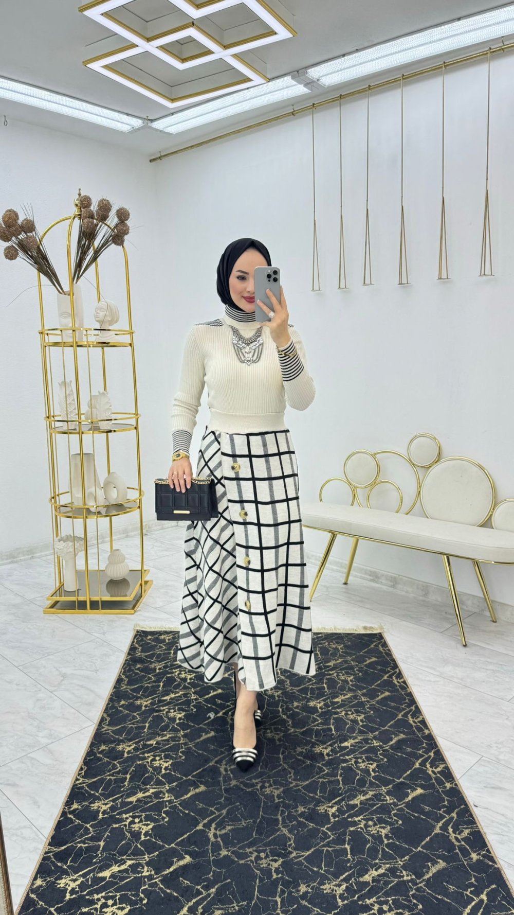 Krem Ekose Triko Takım Tesettür Giyim