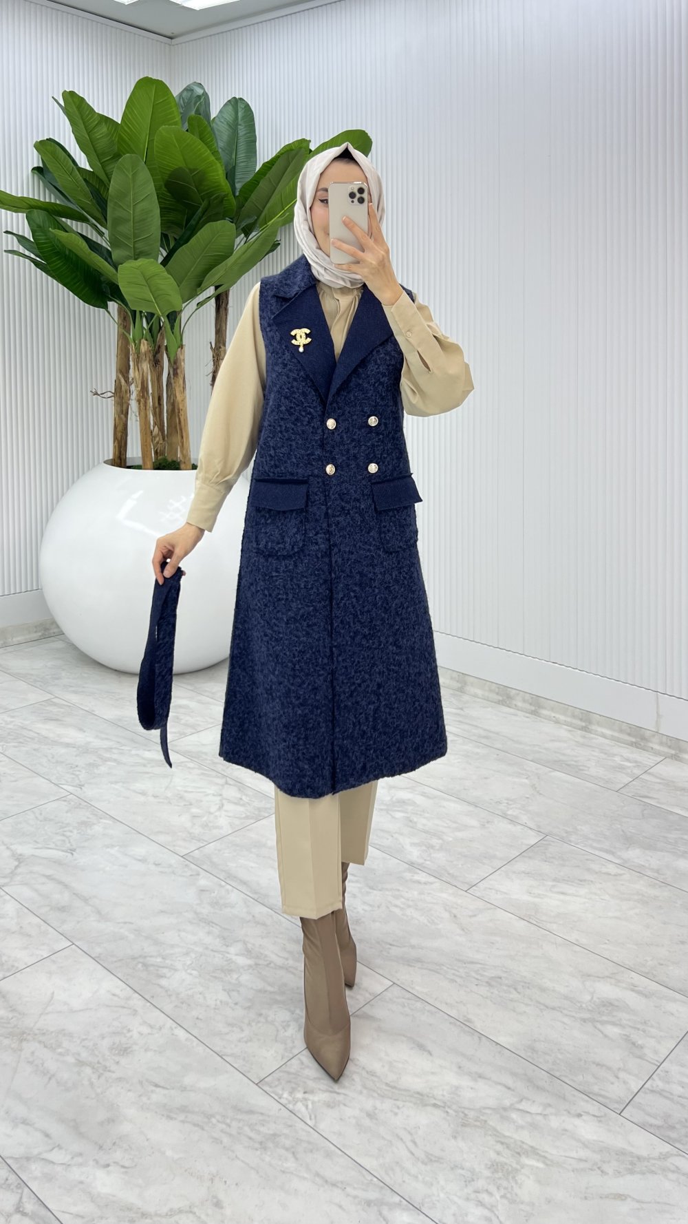 Lacivert Fidan Channel Yelek Broş Hediyeli