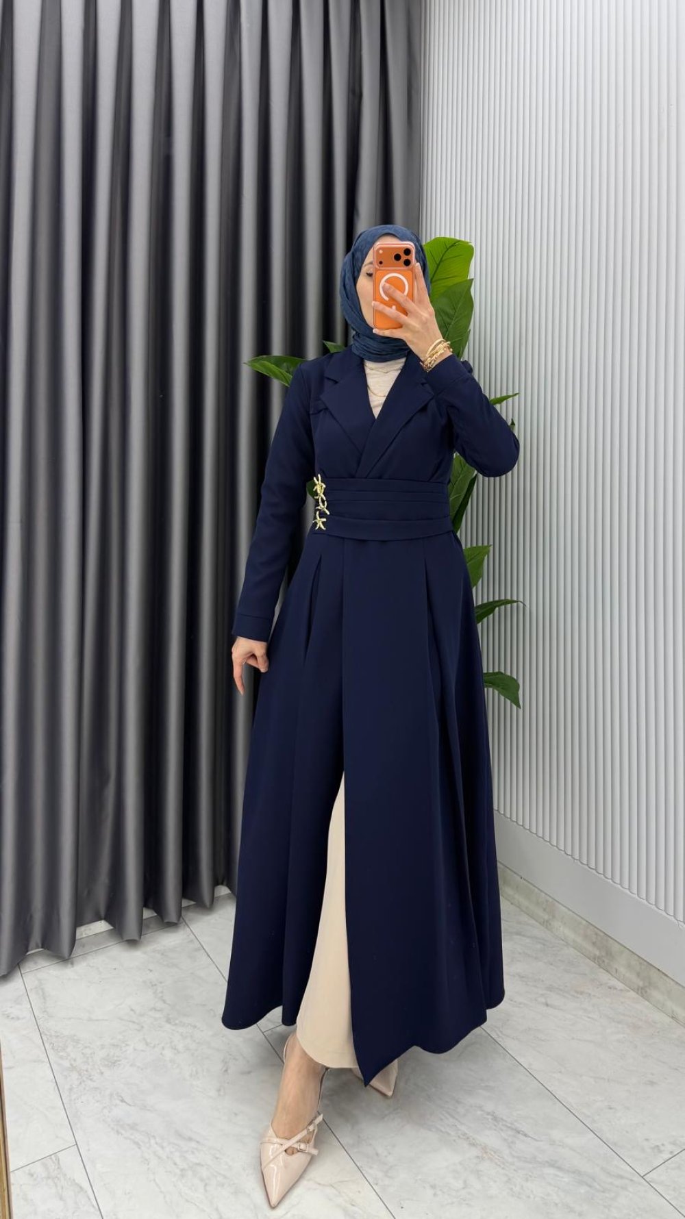 Lacivert Premium Hülya Ferace Elbise Tesettür Giyim