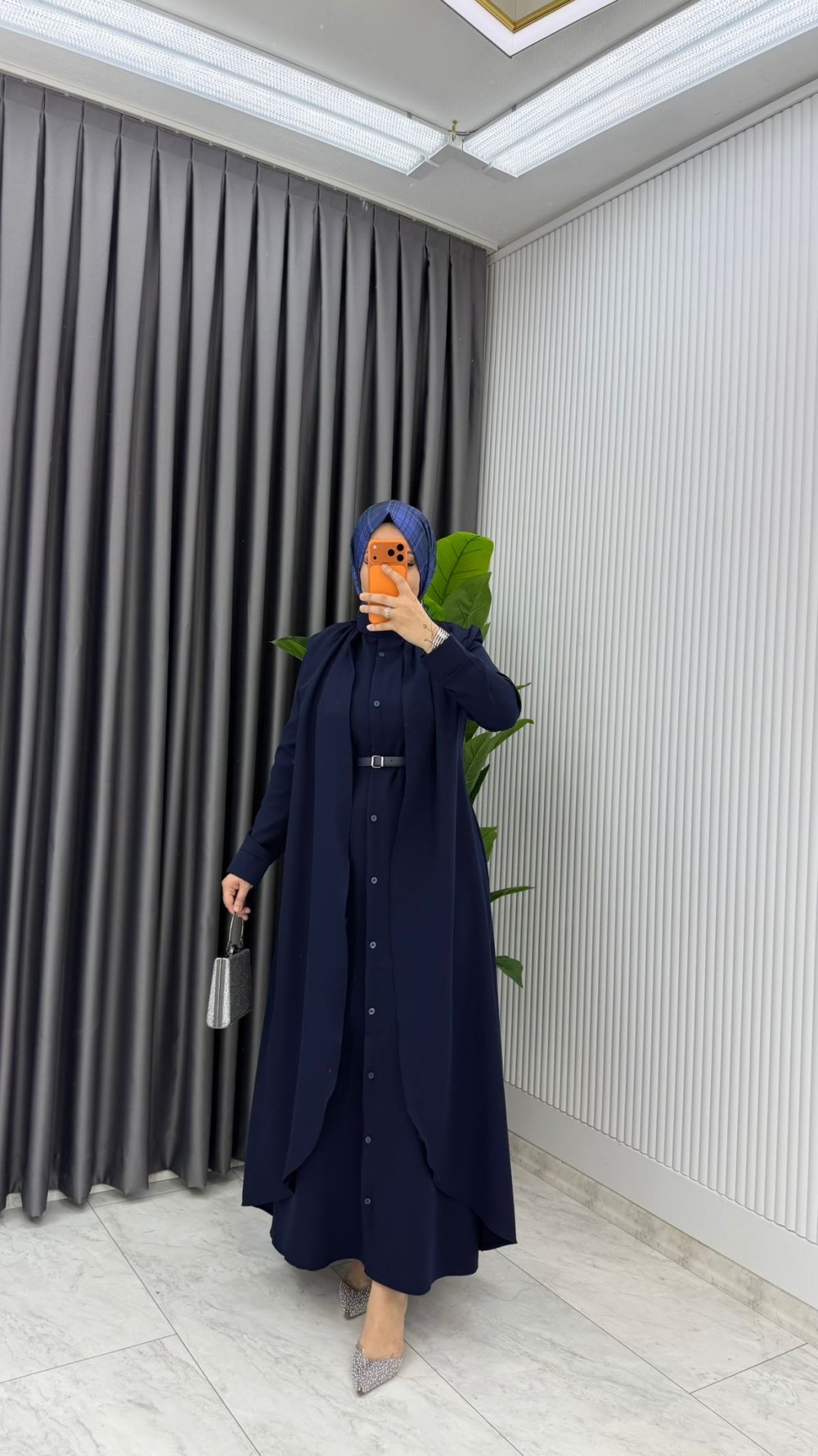 Lacivert Premium Pera Elbise Ferace Tesettür Giyim