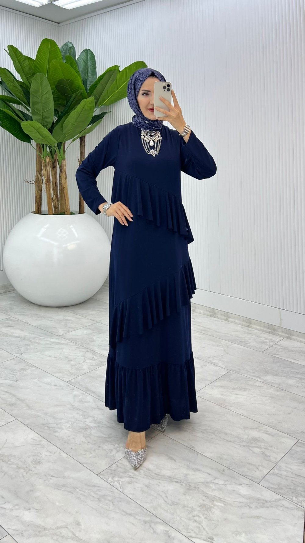 Lacivert Premium Tijen Elbise Tesettür Giyim