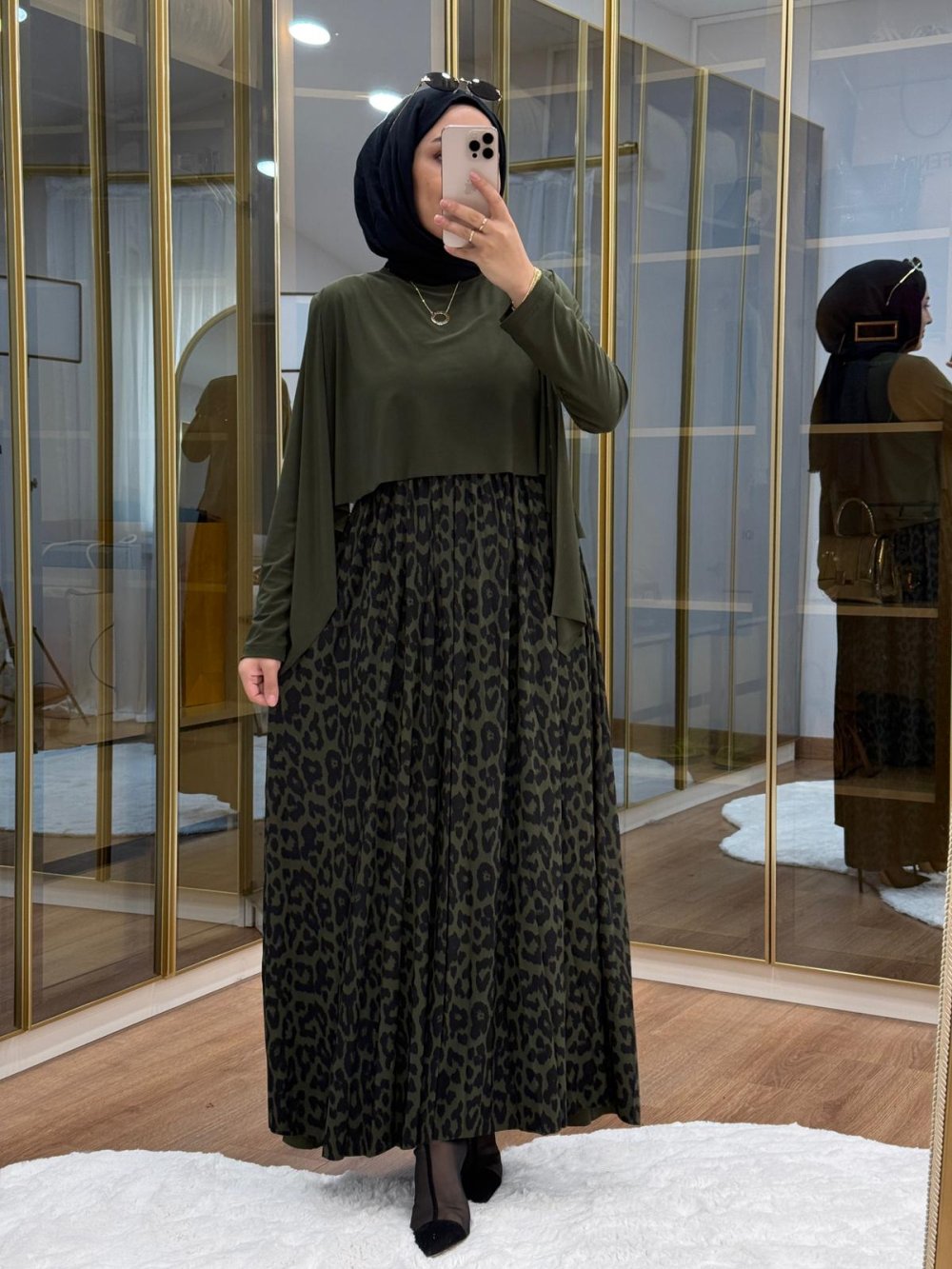 Leopar Desen Tilda Elbise Haki