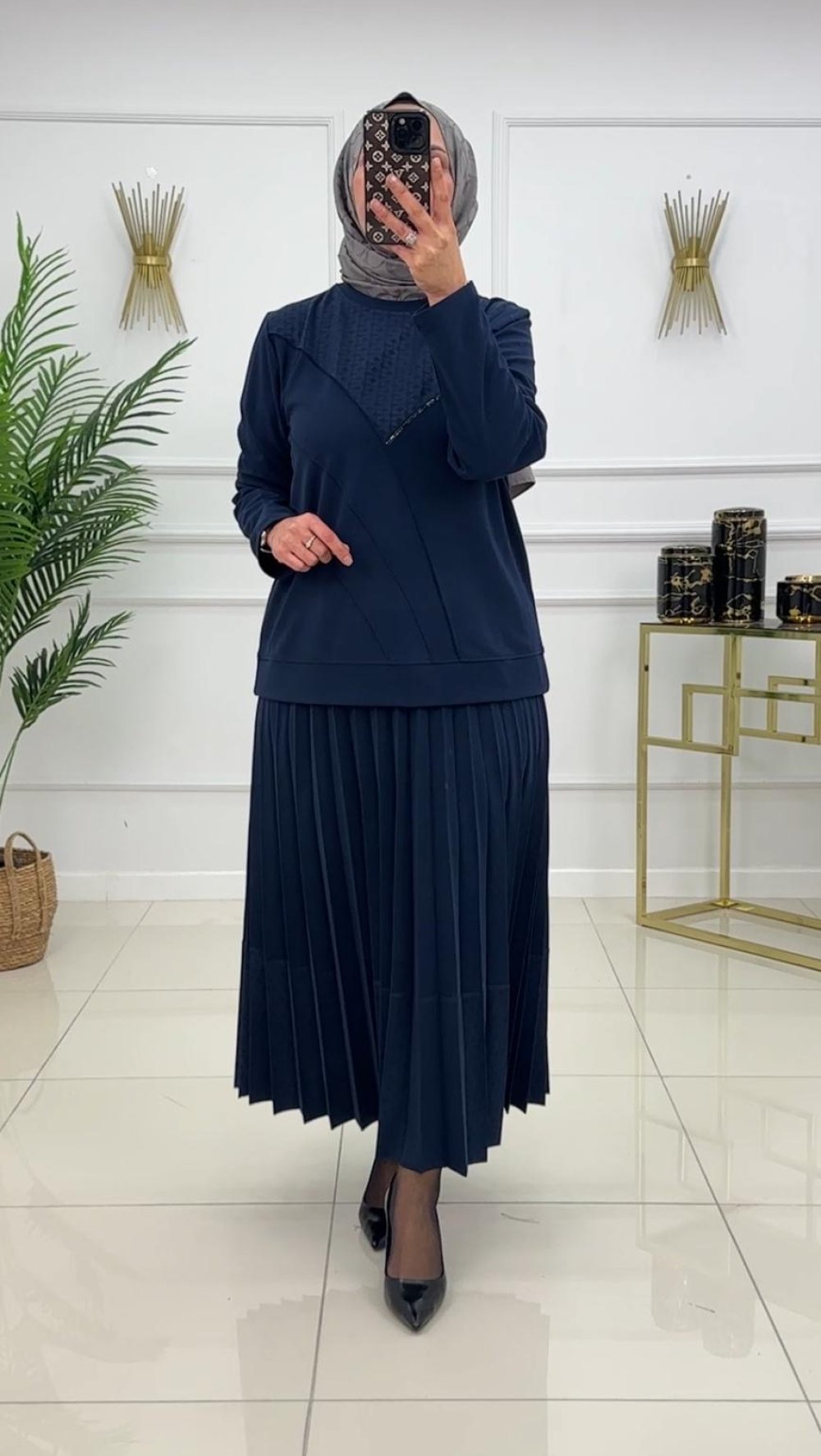 LİDYA ETEKLİ TAKIM - LACİVERT Lacivert
