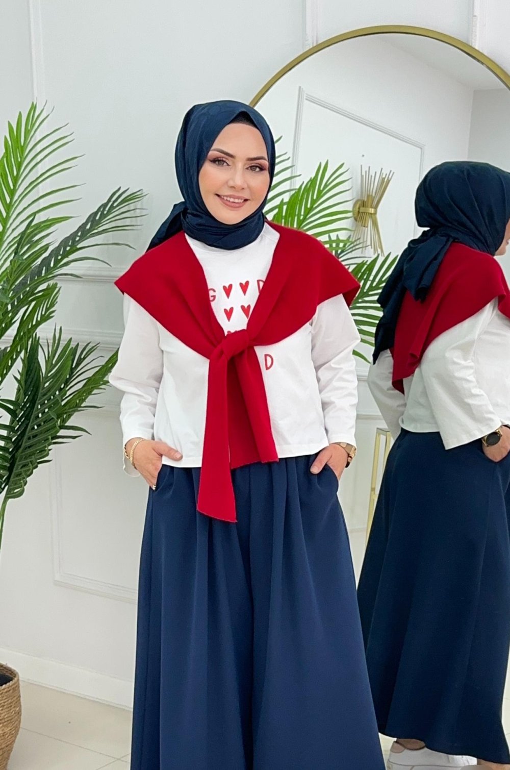 LİYA PARÇALI OMUZ ATKI - KIRMIZI Kırmızı
