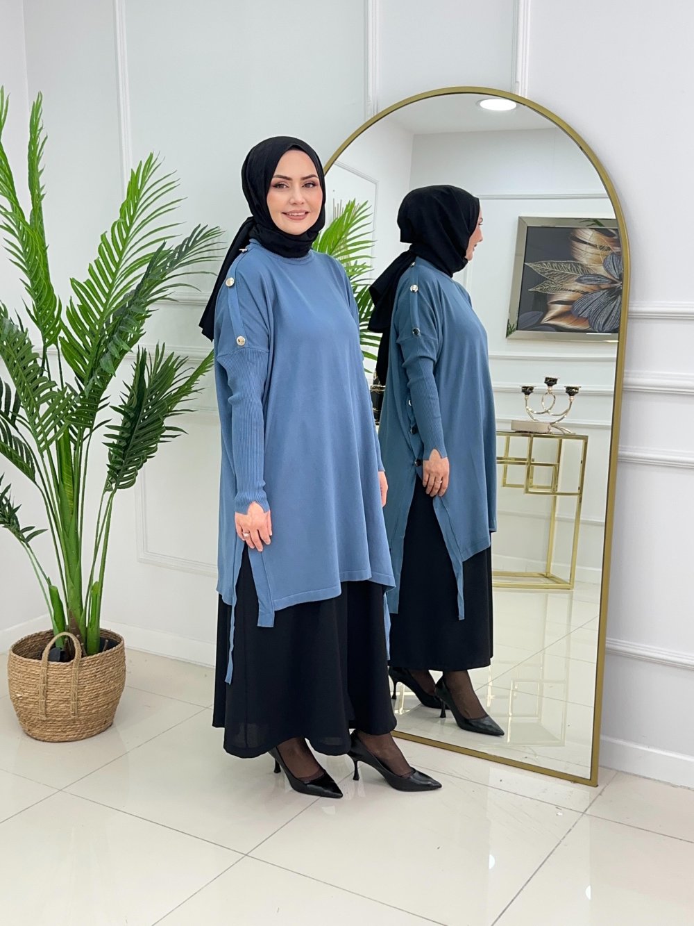 LUMİA MERSERİZE TUNİK - İNDİGO MAVİ İndigo mavi