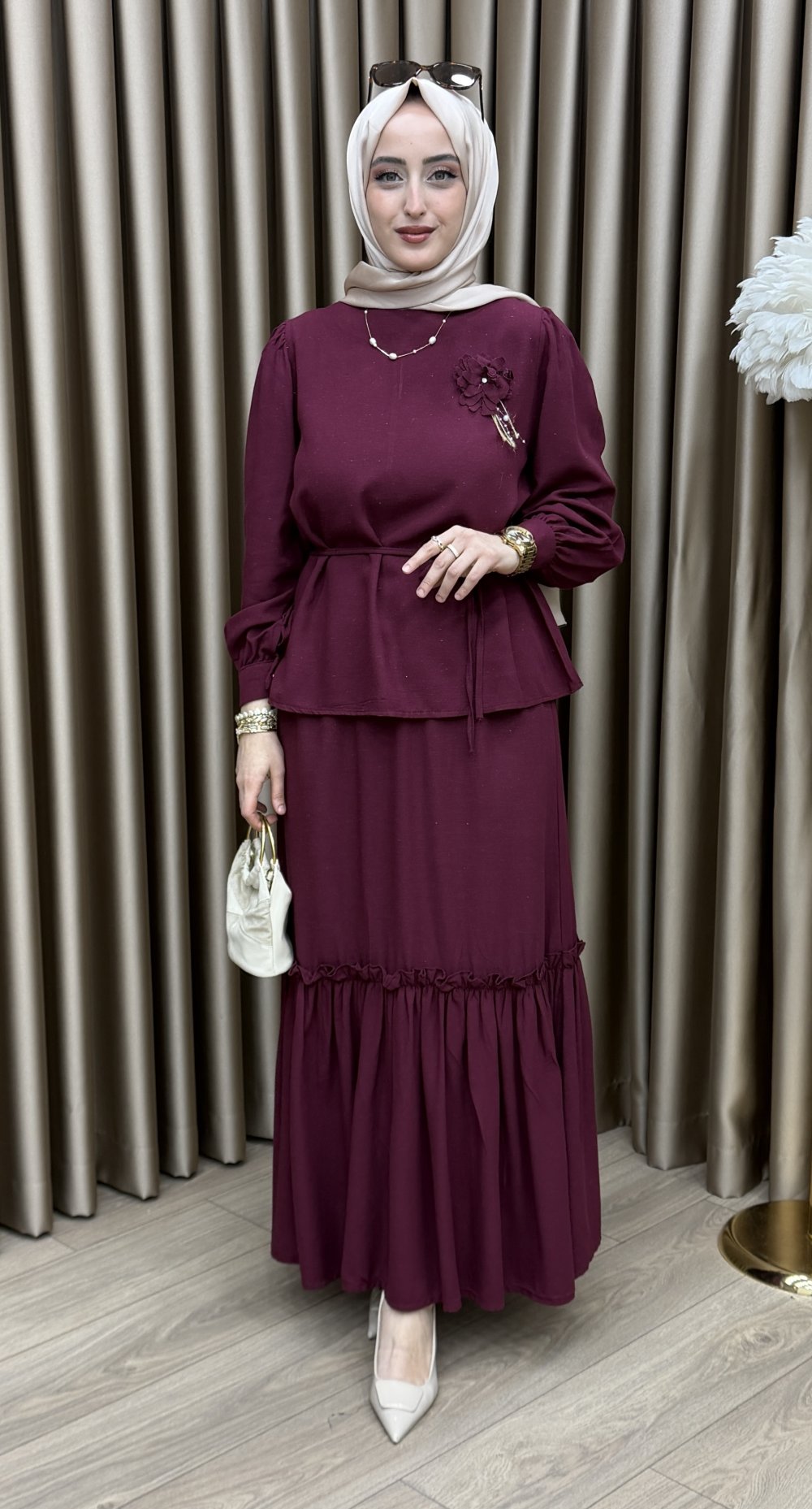 Manolya Etek Takım,hem iş hem de günlük hayatınızda rahatlıkla tercih edebileceğiniz çok yönlü bir parçadır. Şıklığı konforla buluşturan bu tasarım, sezonun en gözde modellerinden biri olacak