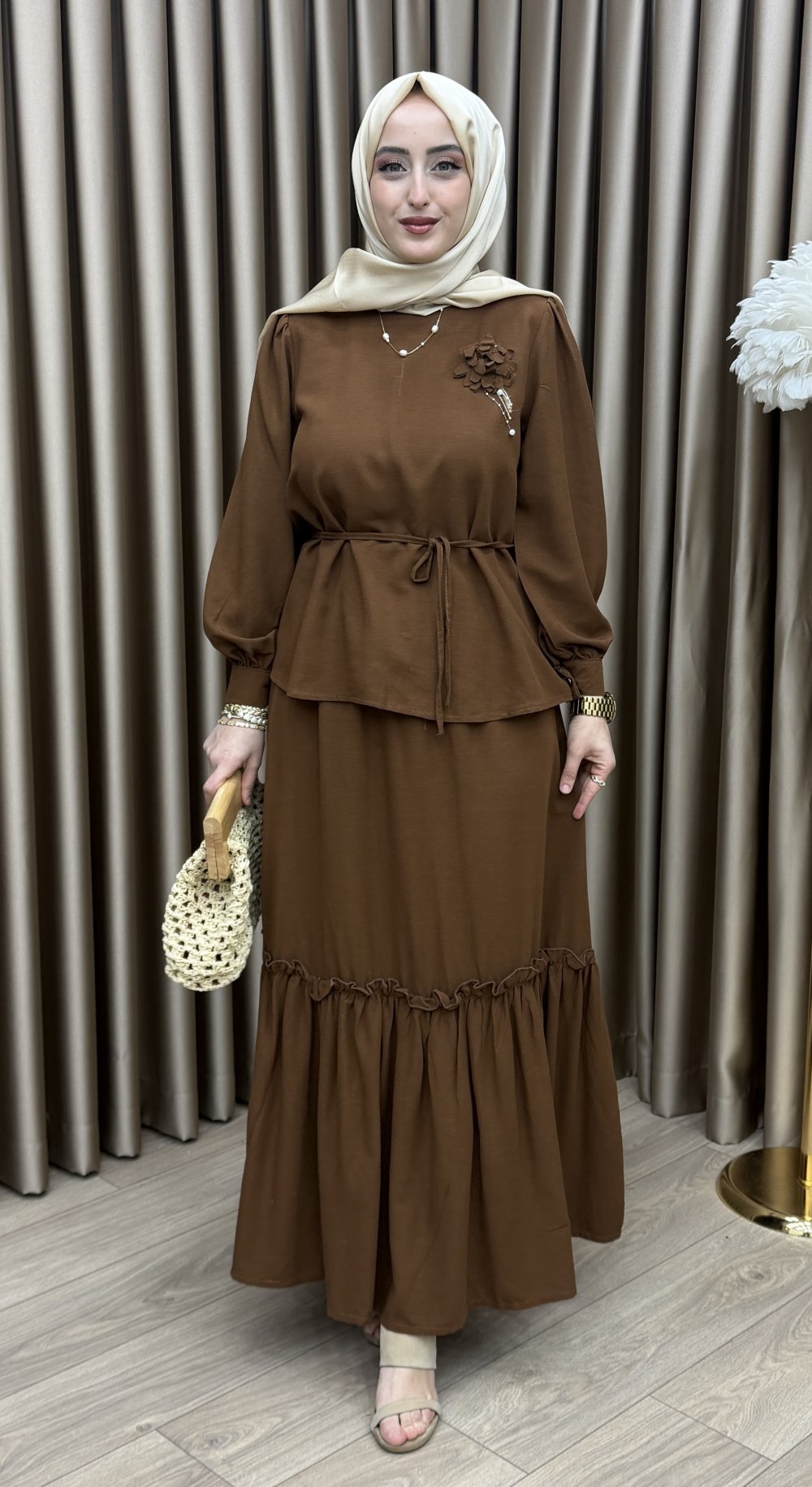 Manolya Etek Takım Kahverengi