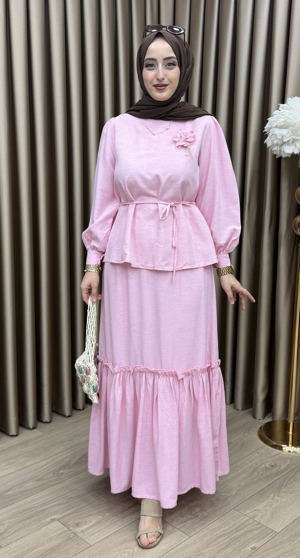 Manolya Etek Takım,hem iş hem de günlük hayatınızda rahatlıkla tercih edebileceğiniz çok yönlü bir parçadır. Şıklığı konforla buluşturan bu tasarım, sezonun en gözde modellerinden biri olacak