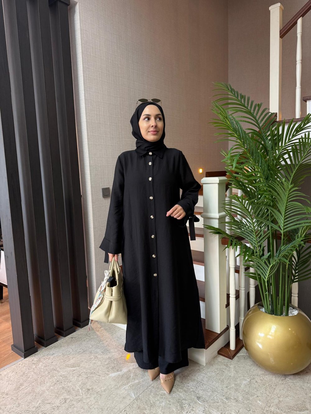 Tunik boy 125 cm’dir. Yanlarda cepleri mevcuttur. Kolları D toka apolet detaylıdır.