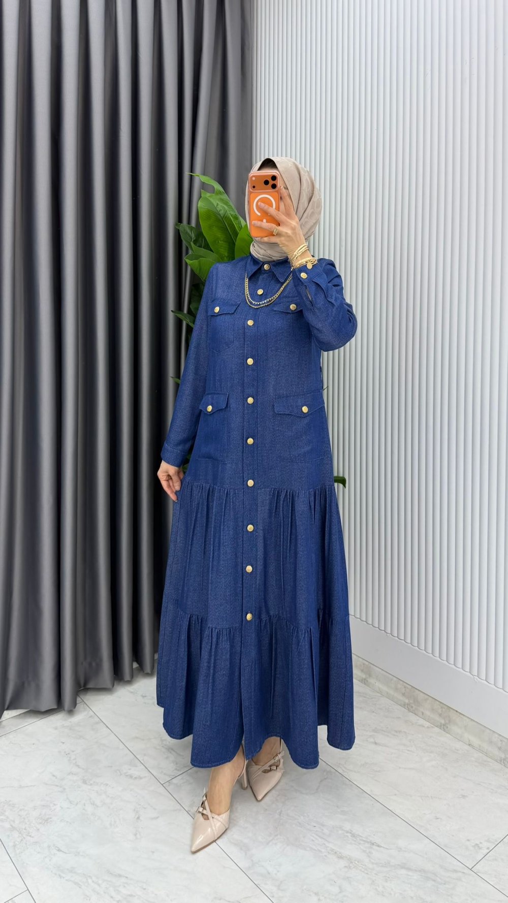 Mavi Kemerli Eslem Kot Elbise Tesettür Giyim
