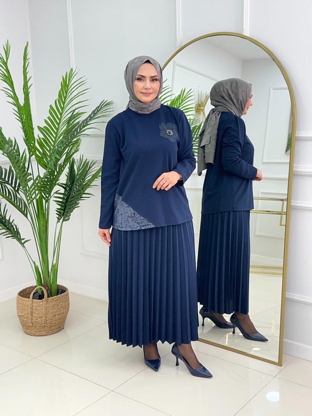 MİNEL ETEKLİ TAKIM - LACİVERT Lacivert