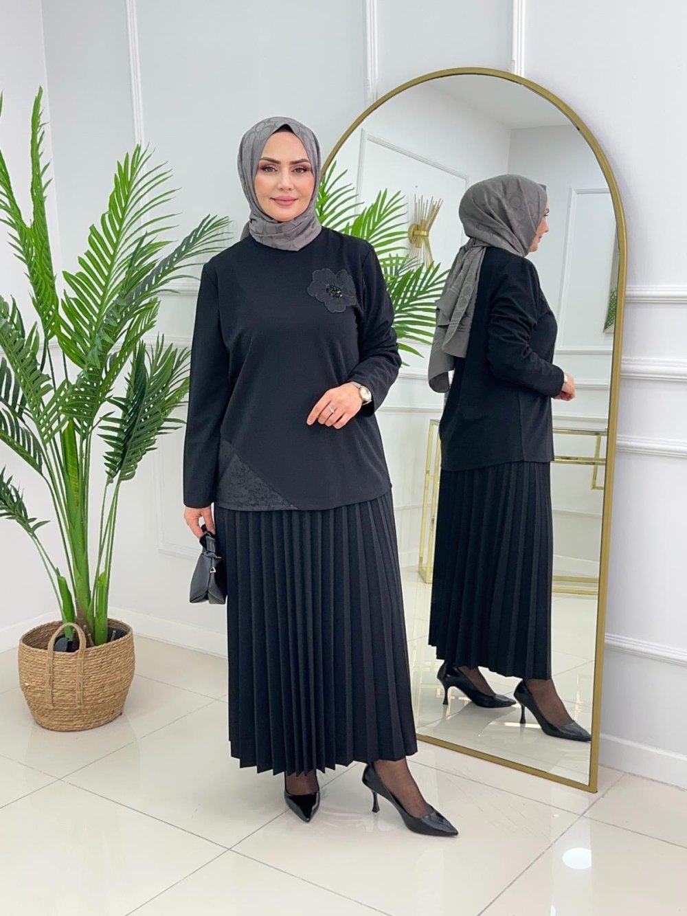 MİNEL ETEKLİ TAKIM - SİYAH Siyah