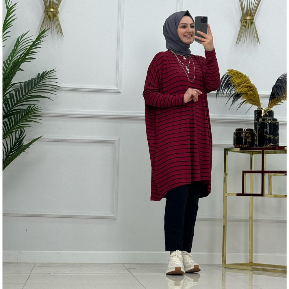 Viskon penye kumaş  çizgili Mira tunik