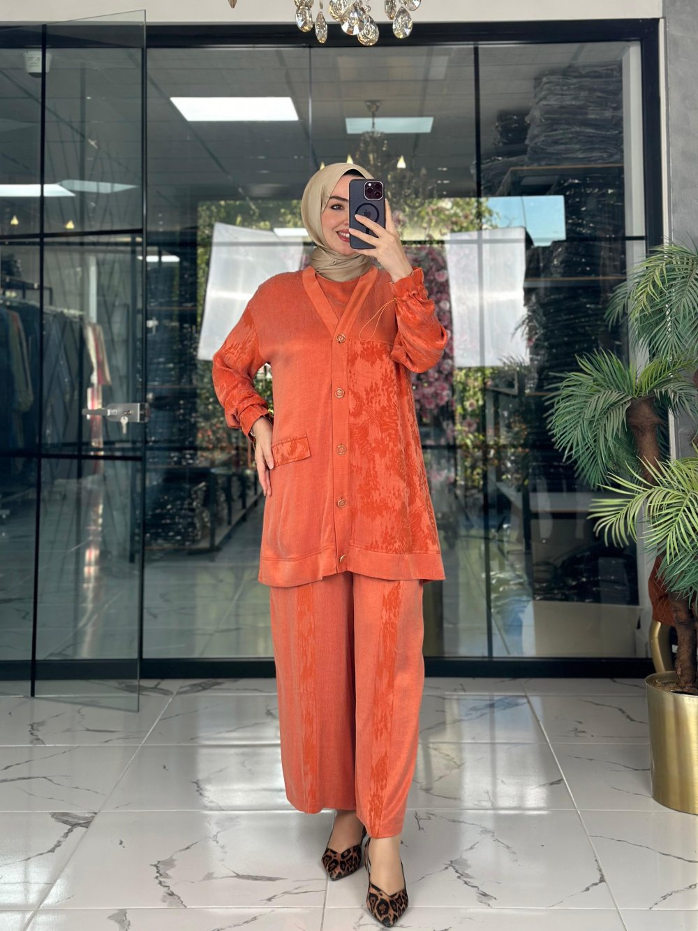kumaşı ipek qupradır. İçliği sıfır kolludur. Pantolon beli lastiklidir. Cebi yoktur.