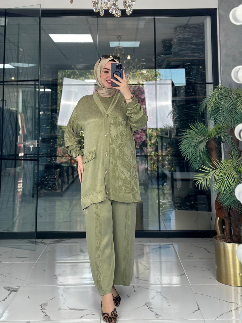 kumaşı ipek qupradır. İçliği sıfır kolludur. Pantolon beli lastiklidir. Cebi yoktur.