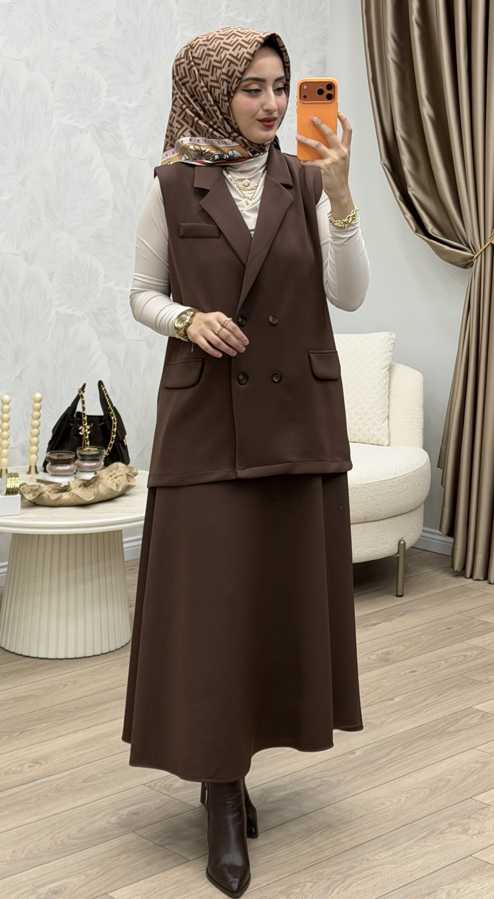 Nare Etek Takım,hem iş hem de günlük hayatınızda rahatlıkla tercih edebileceğiniz çok yönlü bir parçadır. Şıklığı konforla buluşturan bu tasarım, sezonun en gözde modellerinden biri olacak