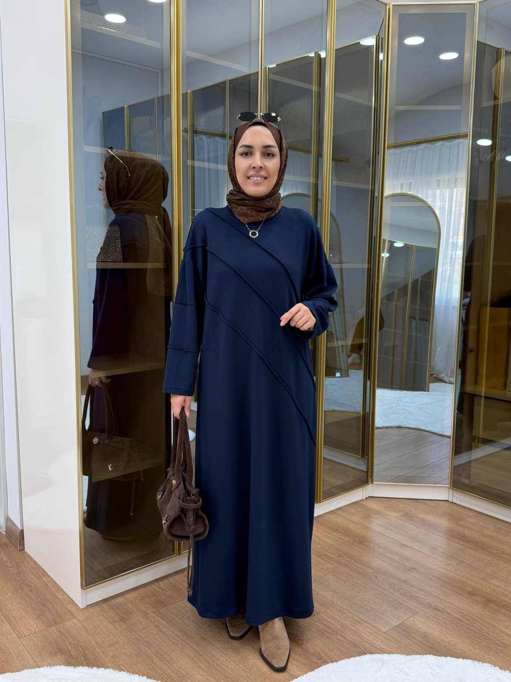 Nervür Detaylı Oysho Elbise Lacivert