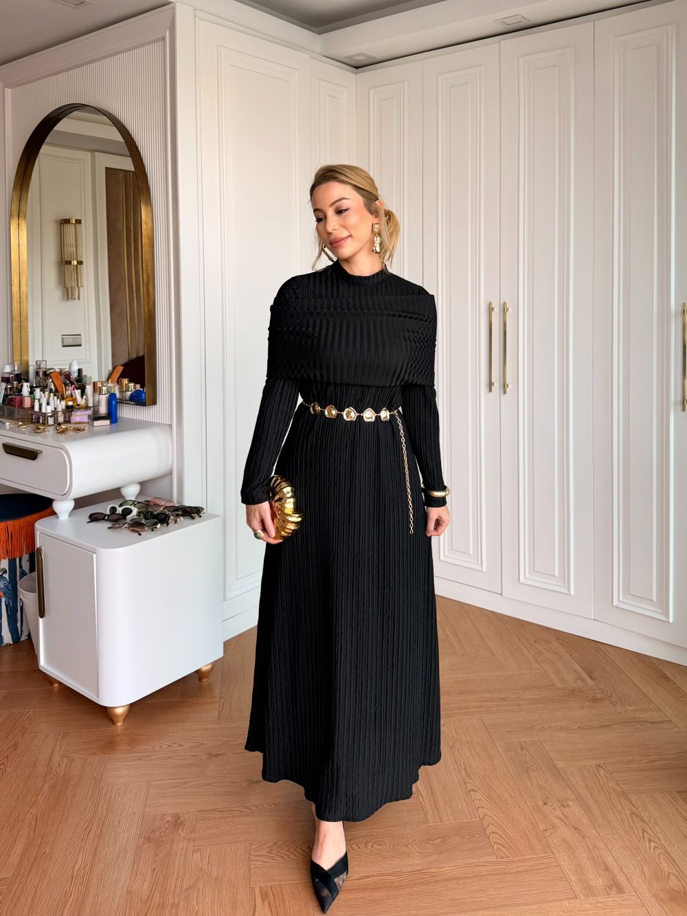 Elbise Çıkarılabilir Şal Formundadır.