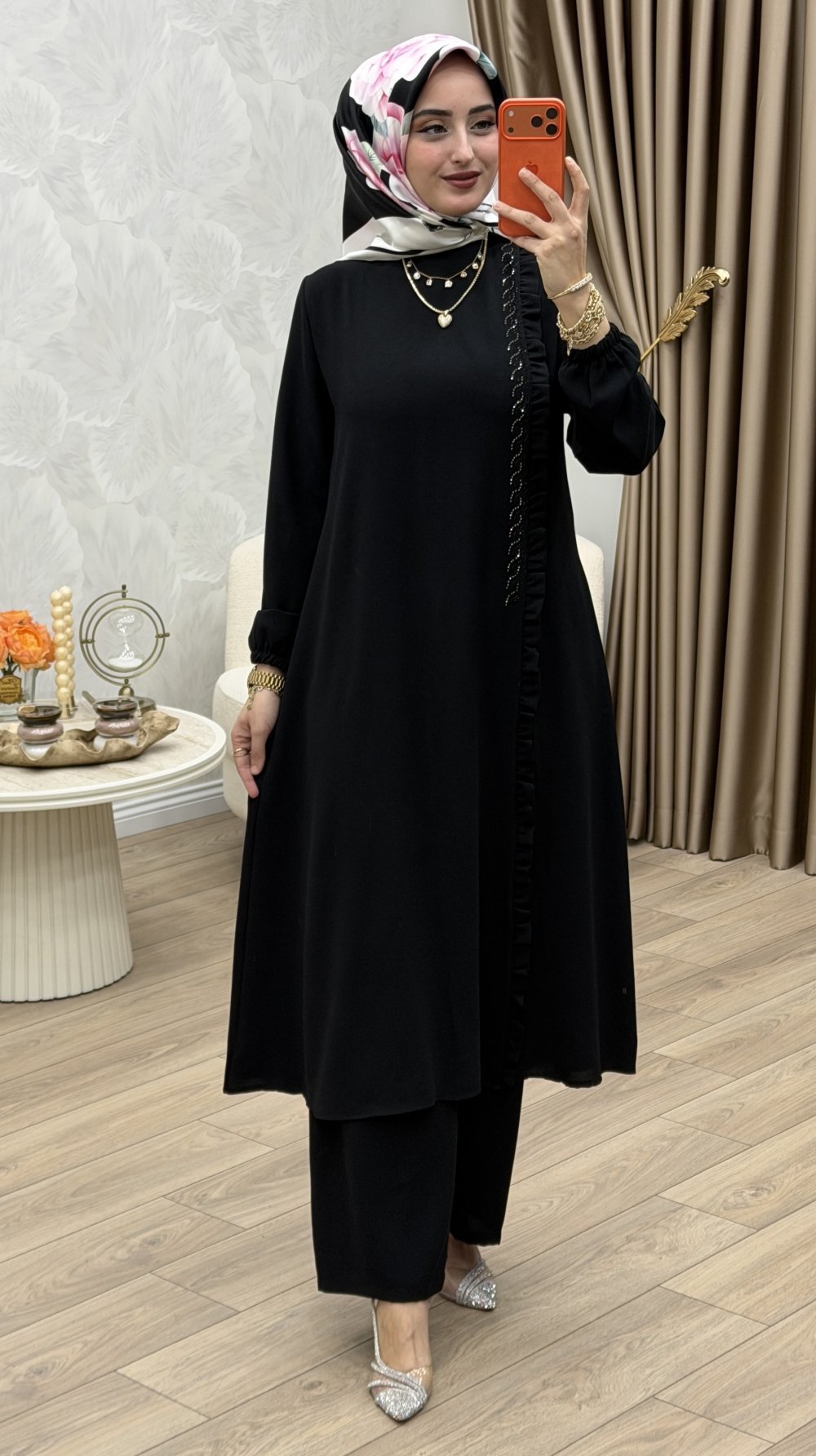 Nevin Takım,hem iş hem de günlük hayatınızda rahatlıkla tercih edebileceğiniz çok yönlü bir parçadır. Şıklığı konforla buluşturan bu tasarım, sezonun en gözde modellerinden biri olacak